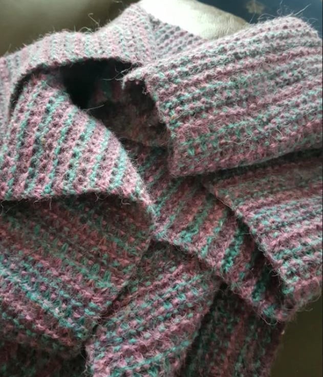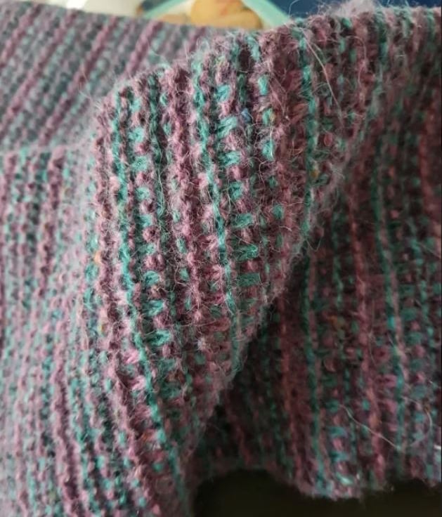 This is a beautifully warm, extra-long scarf, made in slip-garter stitch; it is reversible using a simple but solid stitch.