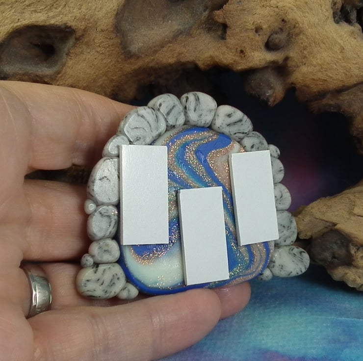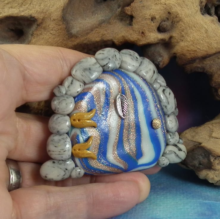 This is a 'one of a kind' creation having been entirely handmade without the use of moulds here at my studio on the Sussex Coast. Modelled with artist blend polymers before sealing with lacquer. The door is two and a half inches high and can be attached to any flat surface with pads on reverse.