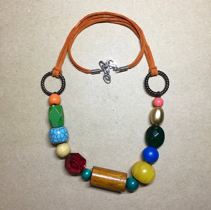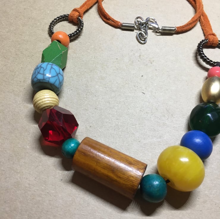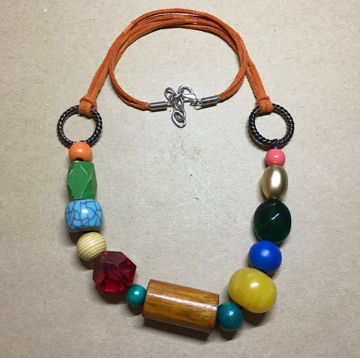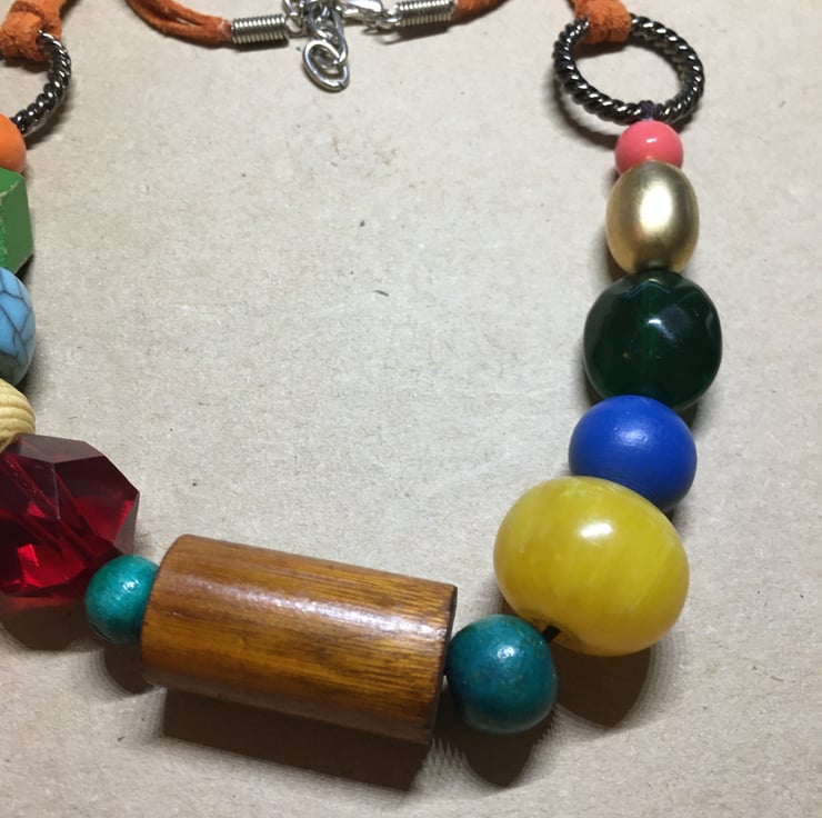 Gorgeous Upcycled Handmade Colourful Beads Statement Necklace with various vintage material beads