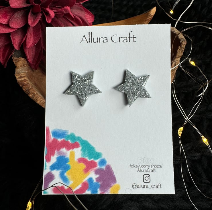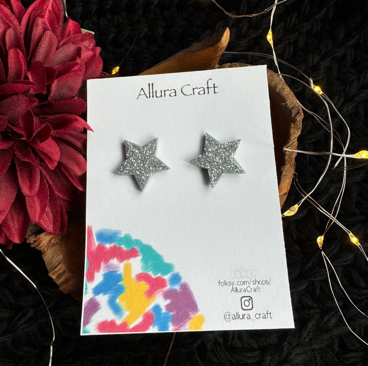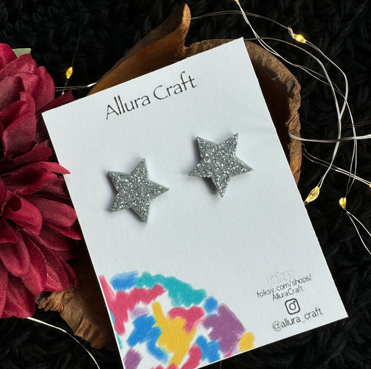 Super lightweight grey wooden stars with a silver sprinkle of glitter and finished with a uv resin top for endurance and twinkle enhancement.