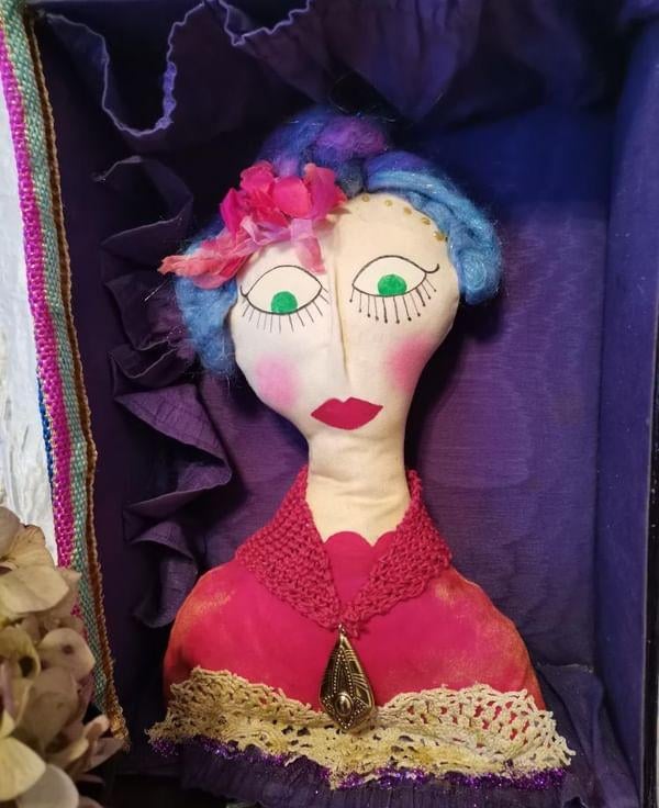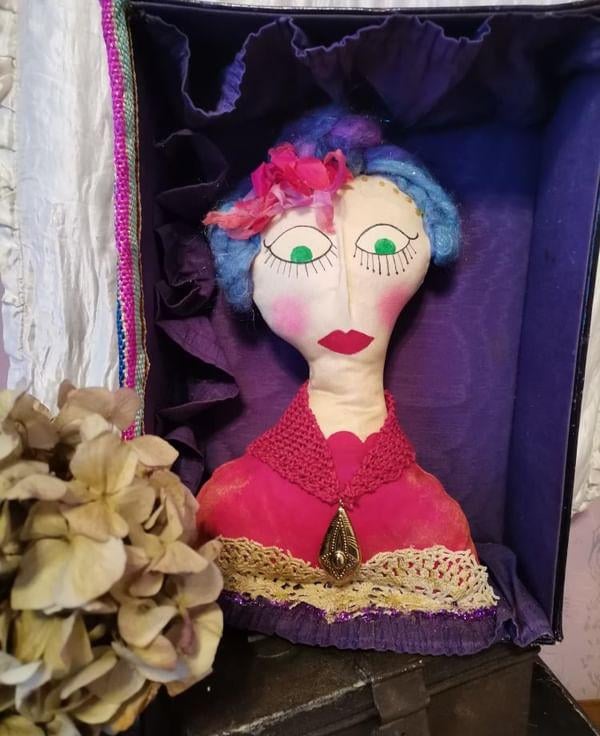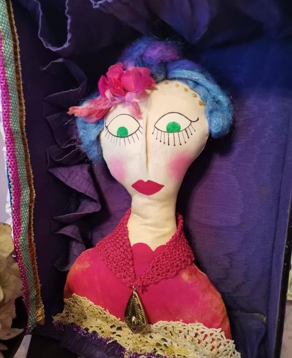 A OOAK textile art doll based on a vintage fortune teller