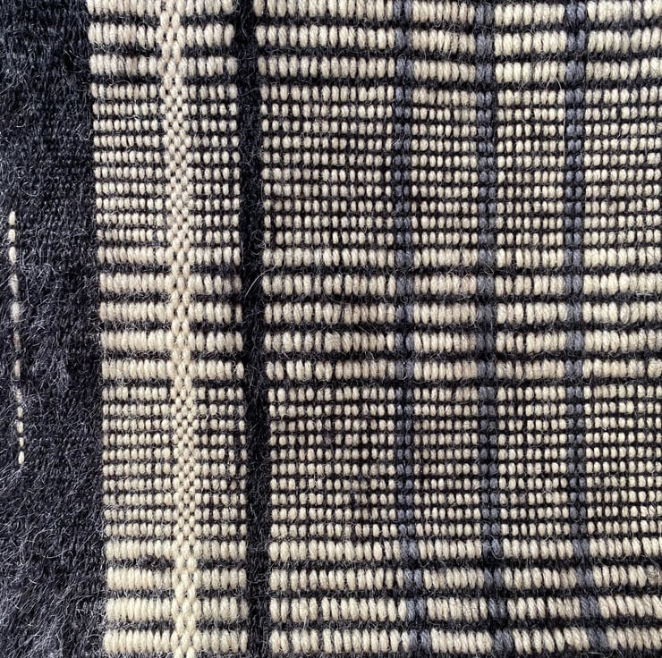 Hand woven cushion, hand crafted using mohair and wool yarns by Yvonne Skelton