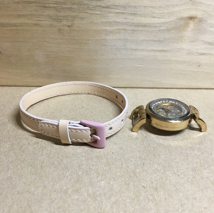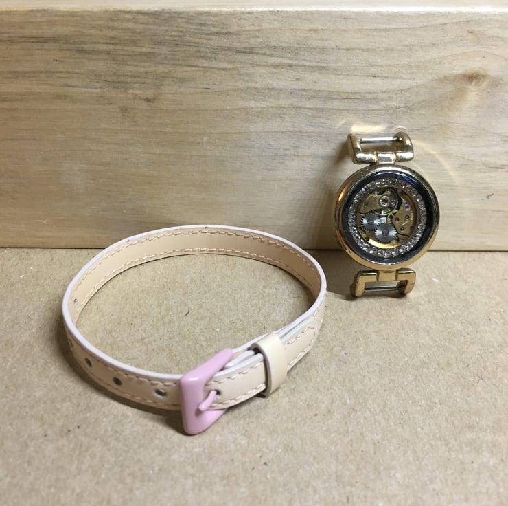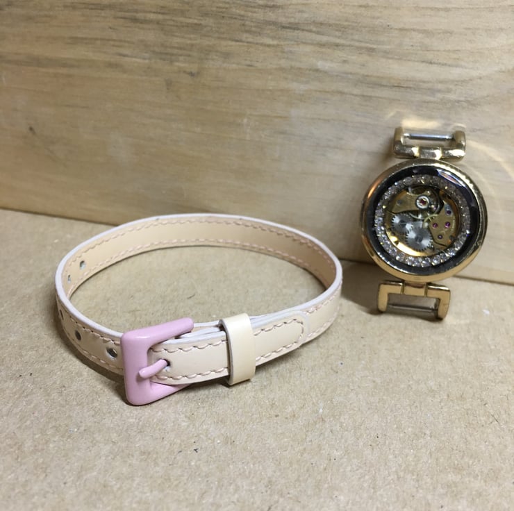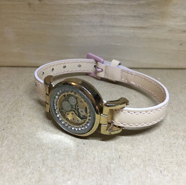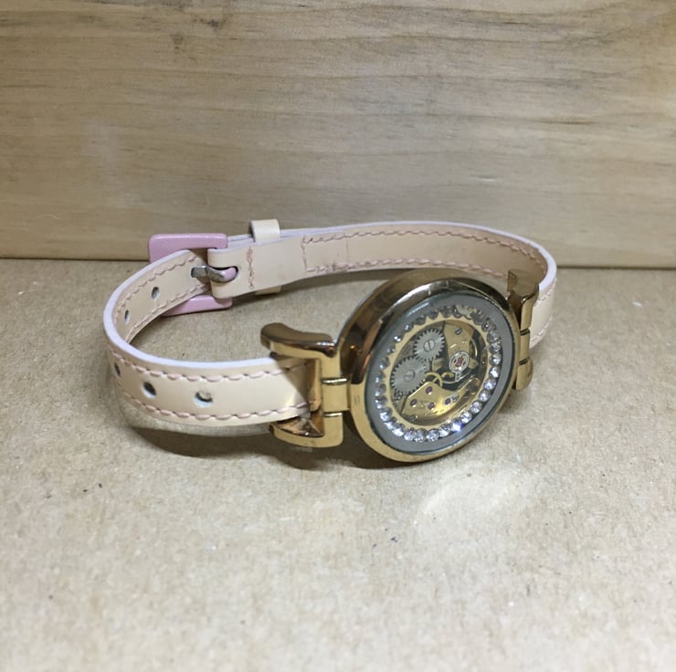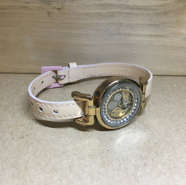 Upcycled Watch Movement Match With A Pale Pink Faux Leather Handmade Bracelet