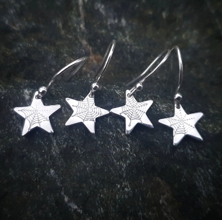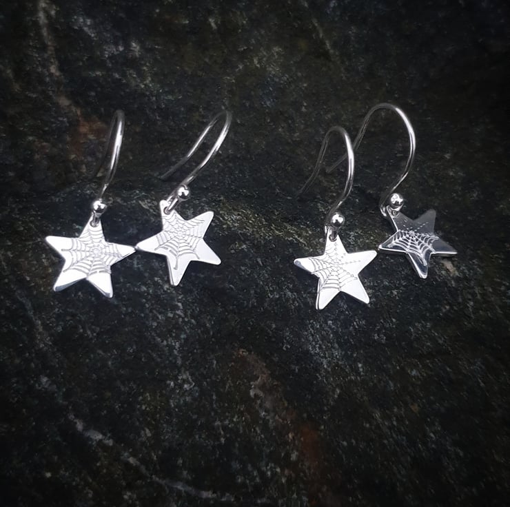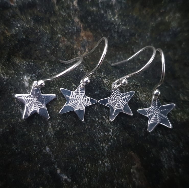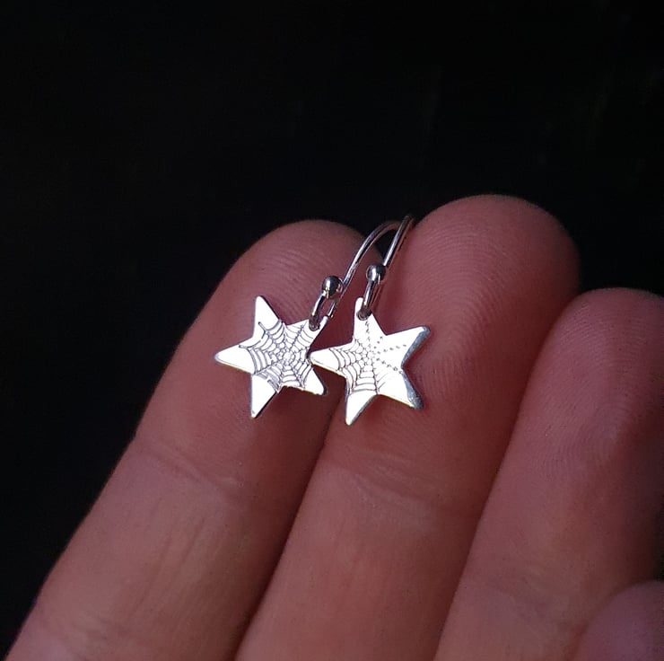 Made from sterling silver they measure 10mm across with spider webs stamped into their surface.