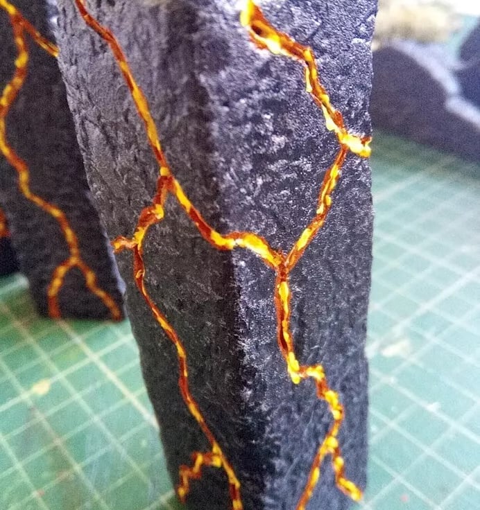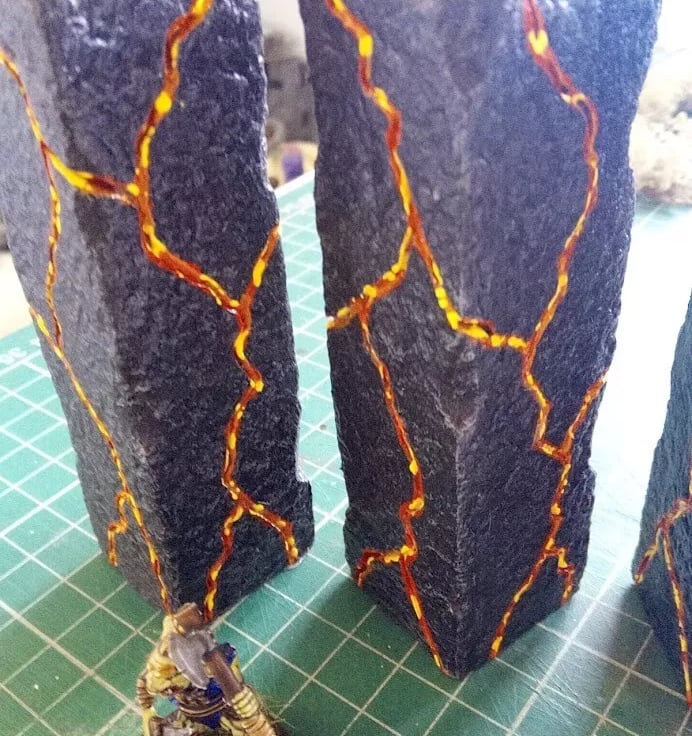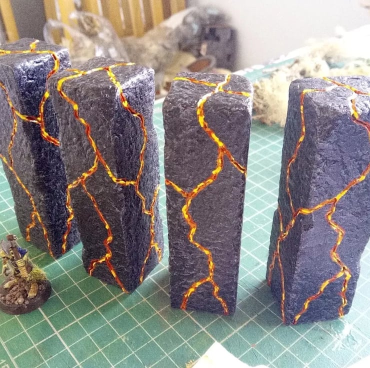 Set of 4 stunningly detailed handcrafted Lava pillars, brand new.