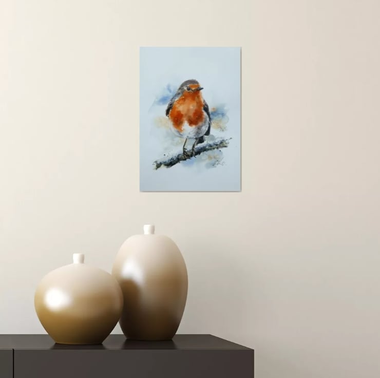 Working from my home studio on the beautiful Isle of Mull off the west coast of Scotland, my paintings are inspired by the wonderful Seascapes, Landscapes and Wildlife that surround me. This painting is of the handsome Robin, a joy to watch in the garden or on a walk.