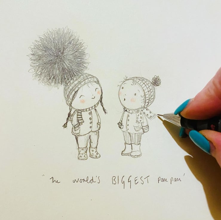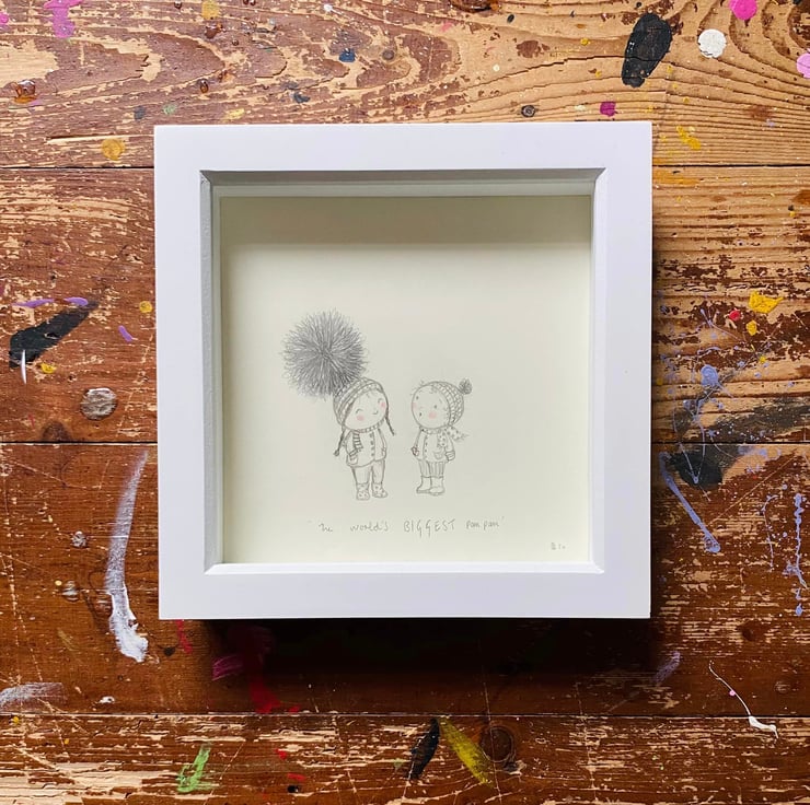 The World's Biggest Pom Pom - framed original sketchbook illustration