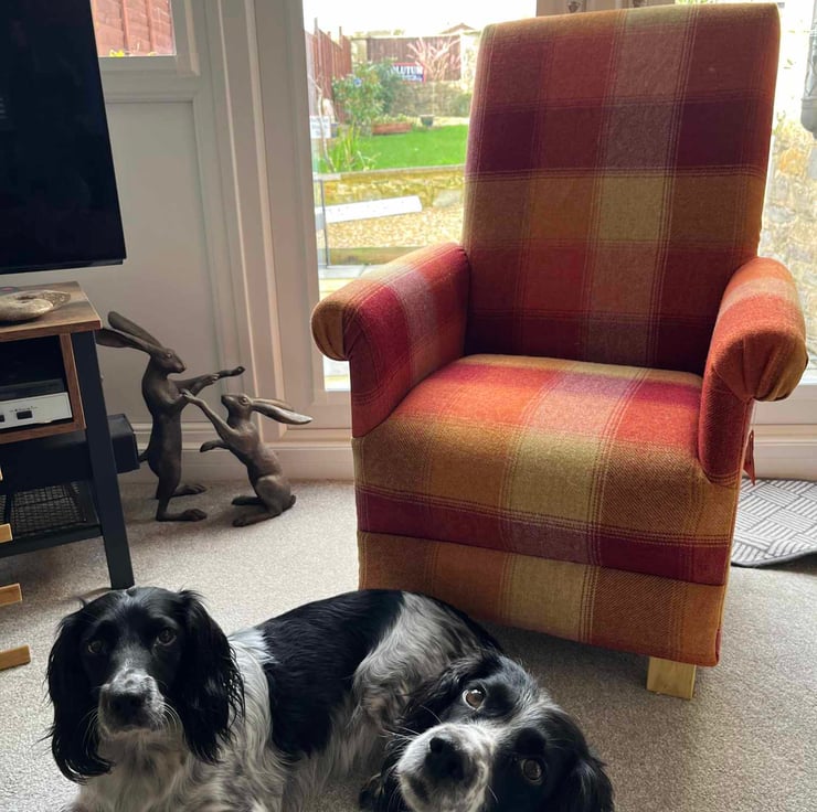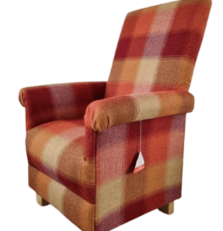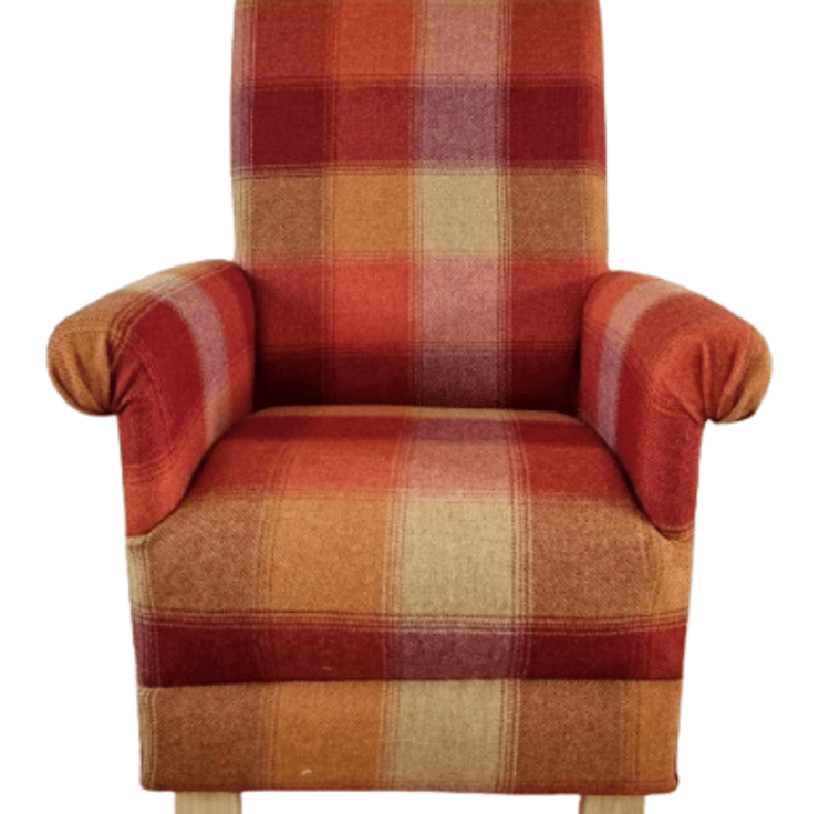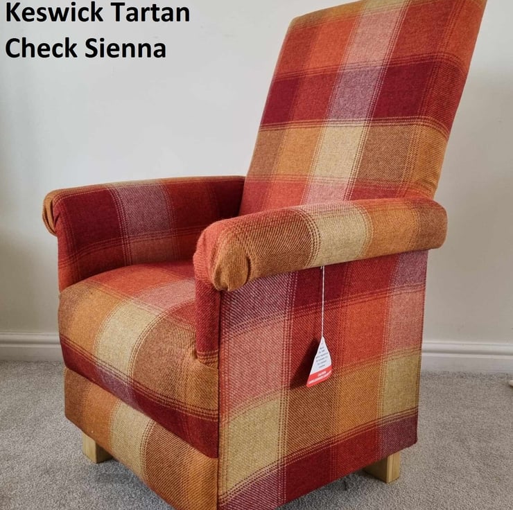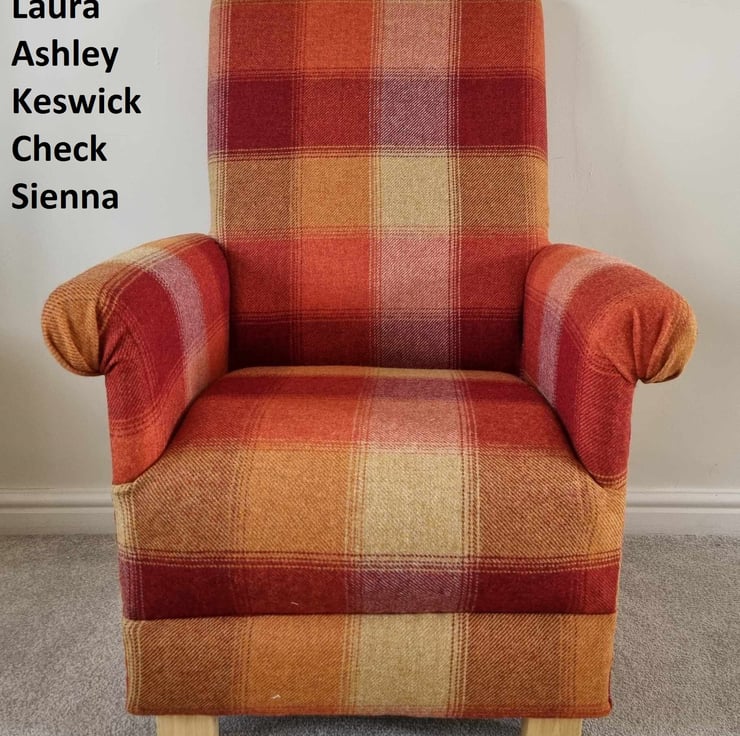This is a handcrafted, sturdy adult sized armchair, which has been made by myself, a professional upholsterer with over 32 years experience, using Laura Ashley Keswick Sienna Tartan fabric in Burnt Orange.