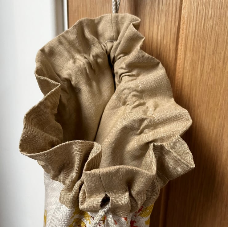 Perfect for storing all sorts of things. Could be used as a small project bag or a gift bag which can be reused, or just to hang on a peg and look pretty.