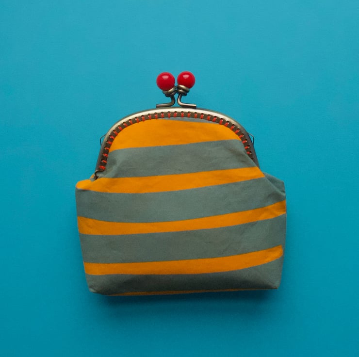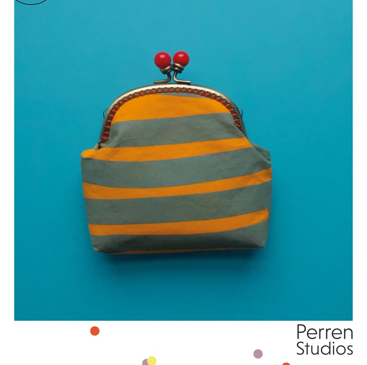 This attention seeking fabric purse is playful and perfect for coins, bank cards, a spot of make-up and other valuable items such as a mini sewing kit or a favourite cat toy!