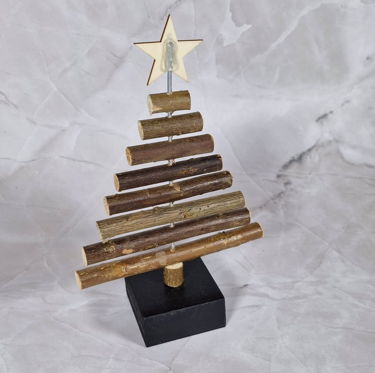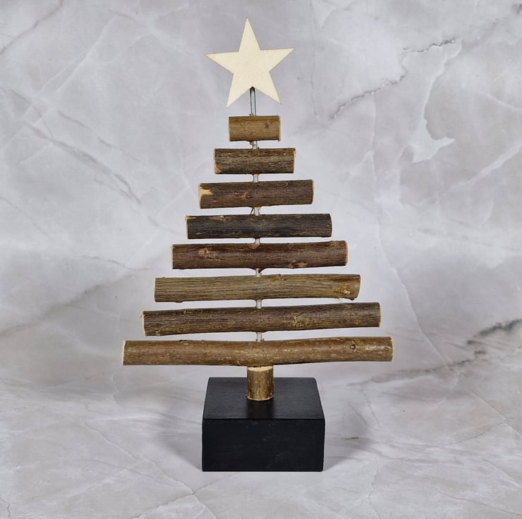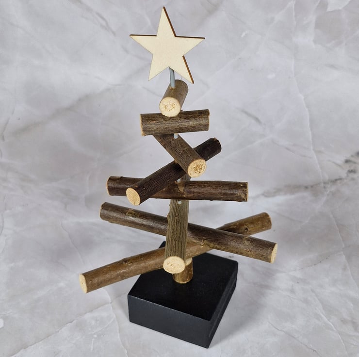 This small Christmas Tree is free standing on a black base and is made from locally collected twigs and branches.