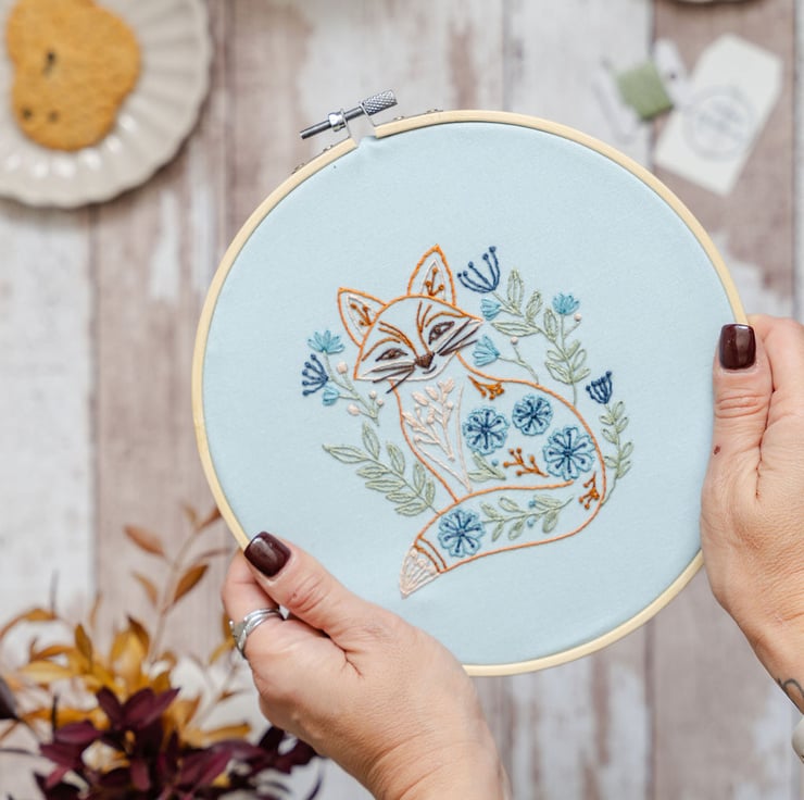 Stitch this woodland inspired Floral Fox embroidery with everything you need included in this handy kit.