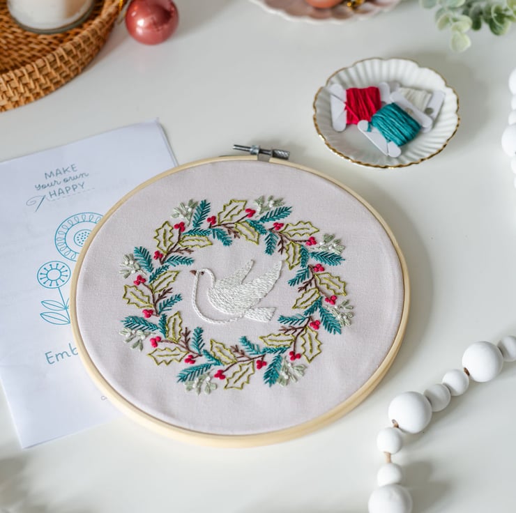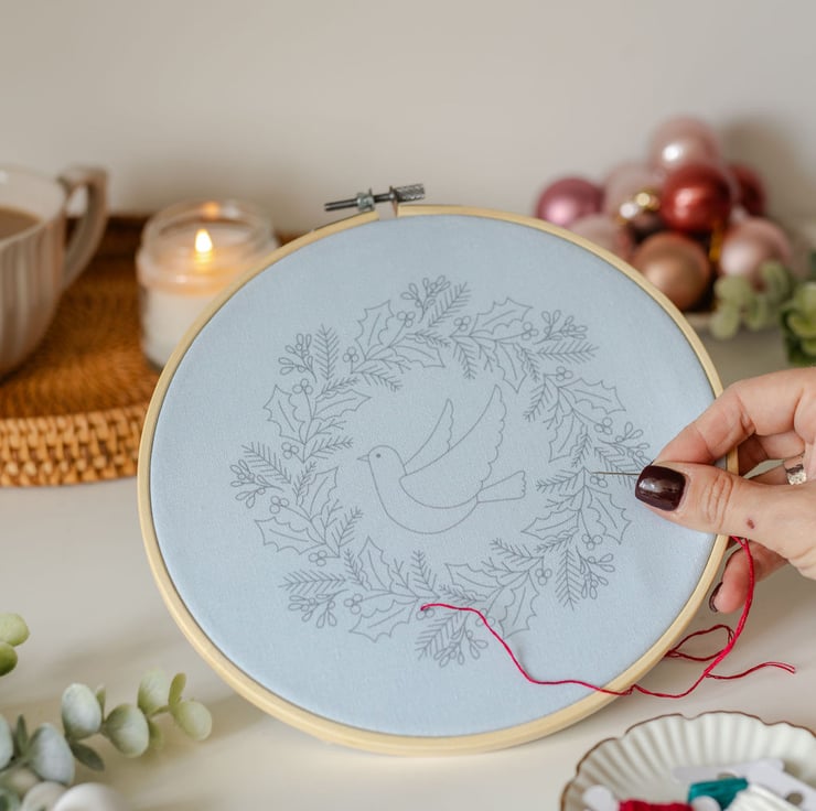 Take some time for yourself in the busy lead-up to Christmas with this beautiful seasonal embroidery project. Perfect for all level of stitchers to get in the festive mood.