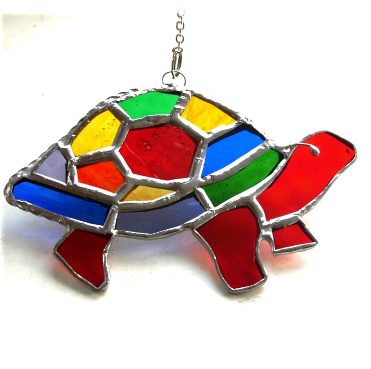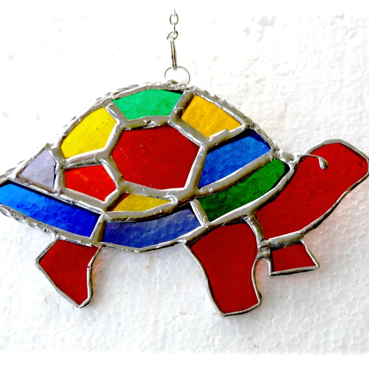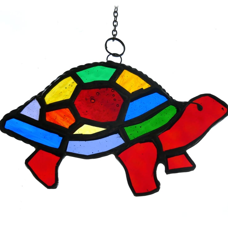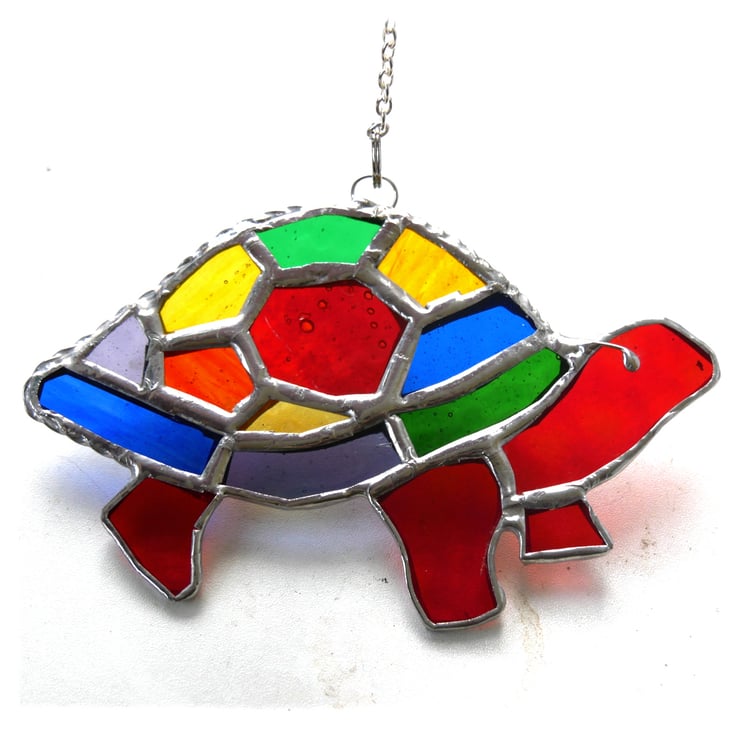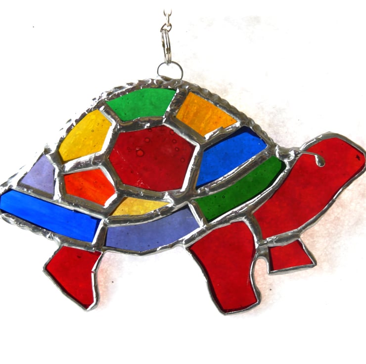 A stained glass suncatcher made using the Tiffany copper foil technique.