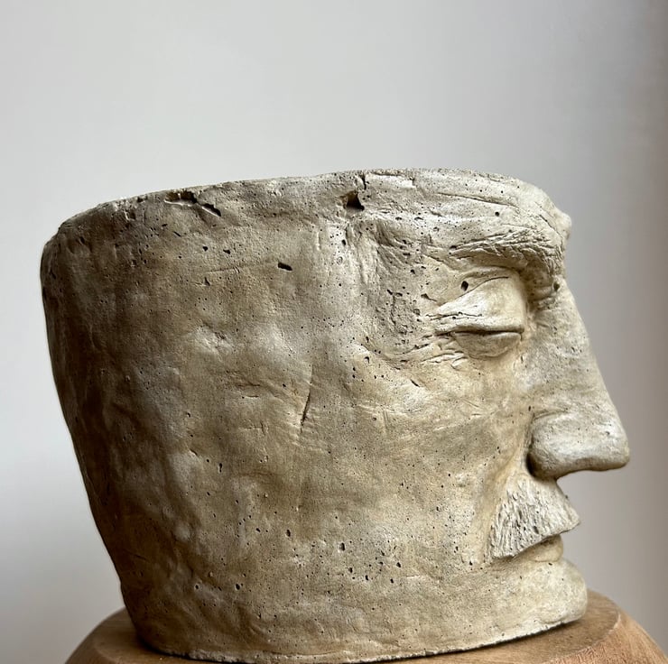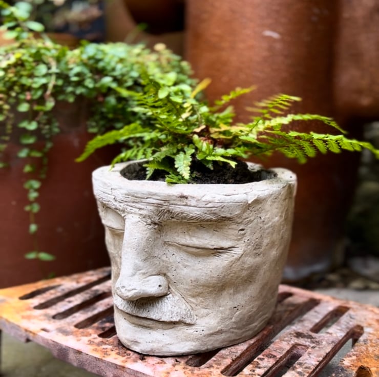 Concrete Potheads are a handmade head shaped plant pot, originally sculpted in clay cast in concrete.