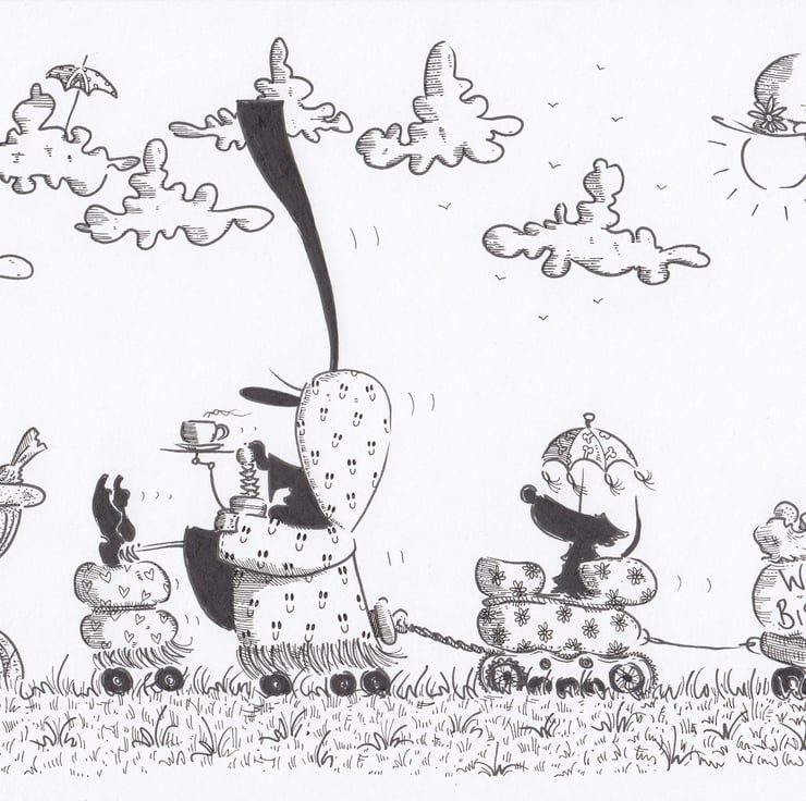 This is an original artwork drawn by myself. It is not a print. It is actually from an A3 sheet that has been cut in half so you may notice the cut along one side.