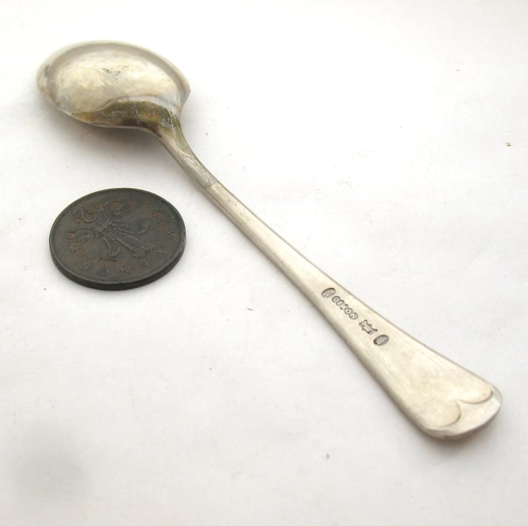 This listing is for ONE handstamped teaspoon (approx. 13cm). You will receive the spoon shown in the photographs. The lettering is coloured black with waterbased, non-toxic acrylic paint. Please wash carefully by hand and don't scrub the wording too hard. Please also note that this is a vintage spoon so it has a few wear marks and some residual tarnish and it is never going to polish to a bright silver colour because of its alloy composition... It will carry on to give you many years of stirring service though.
