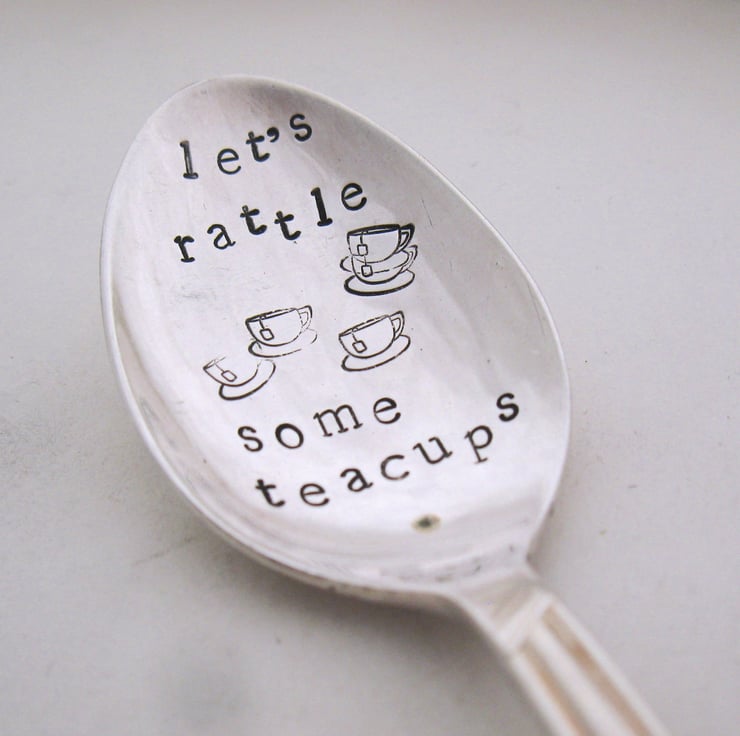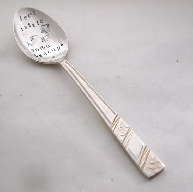 Let's rattle some teacups - I've hand stamped this small-scale call to action on a vintage teaspoon, along with some teacup icons. Be a bit subversive! Make some small stuff happen! Slightly annoy a few people! Or just sit back and enjoy the tea...