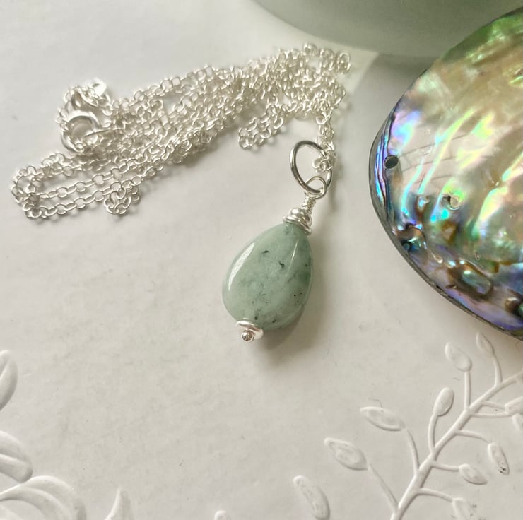 A beautiful handmade natural Burmese Jade pendant featuring a 12mm x 10mm mm Jade drop with a 925 sterling silver bail. The pendant comes on an 18in sterling silver chain and will be received packaged in an Eco Lola Loves presentation box. I will gift wrap this for you. I can include a short message, if you are buying as a gift. Just leave the details when placing your order.