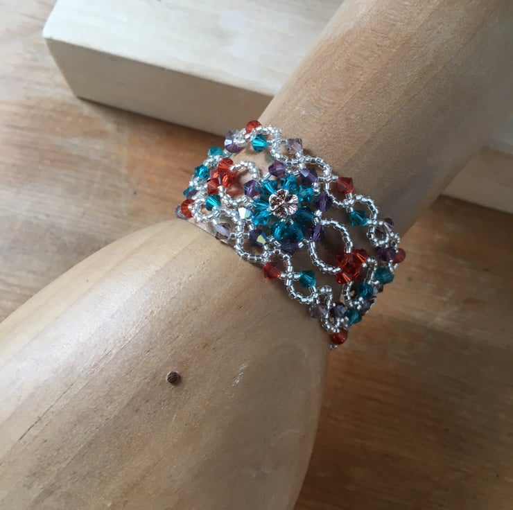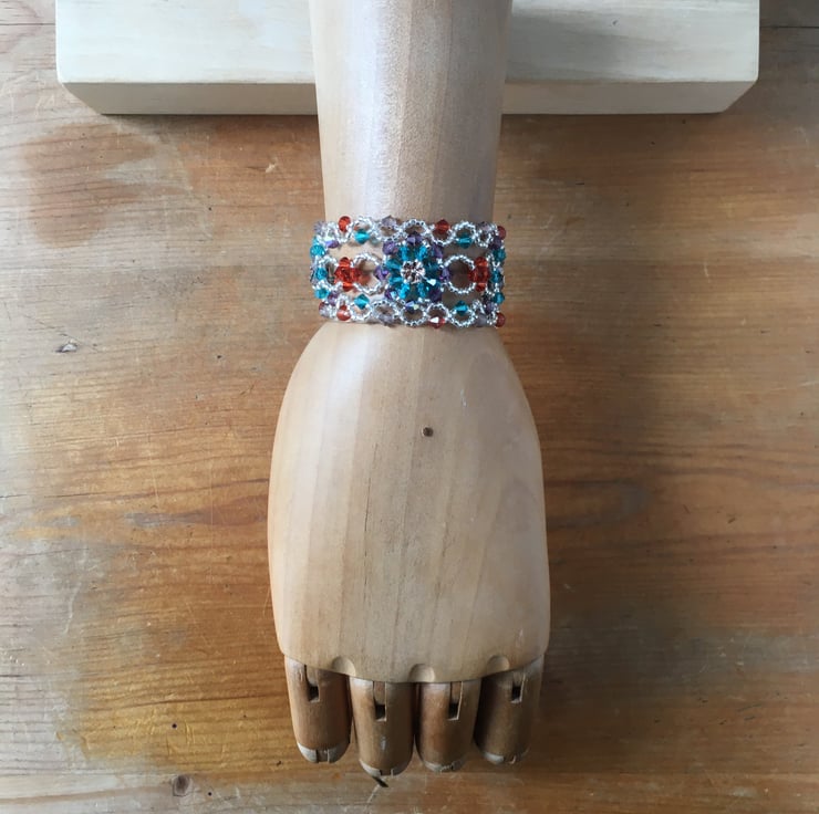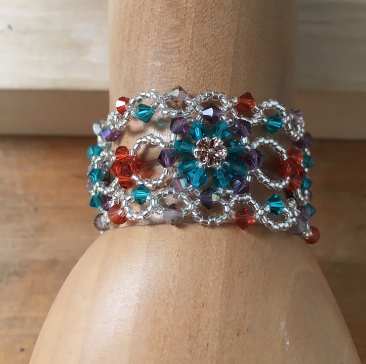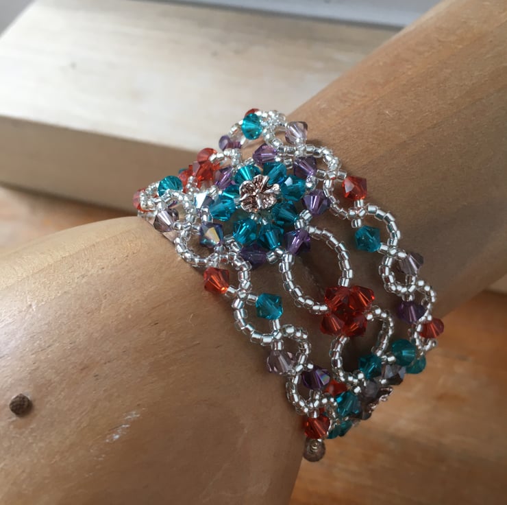 Beautiful glass seed bead & crystal bead beaded bracelet - Upcycled handmade jewelry - gift for her - party jewelry - Wedding