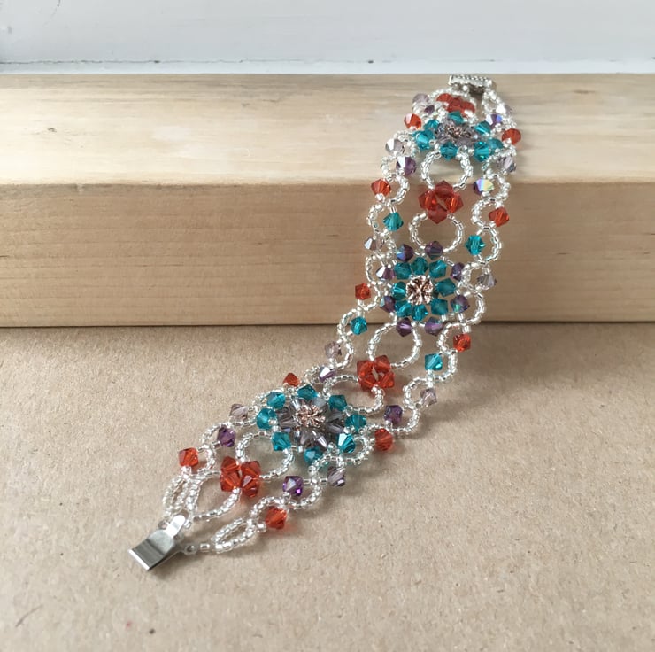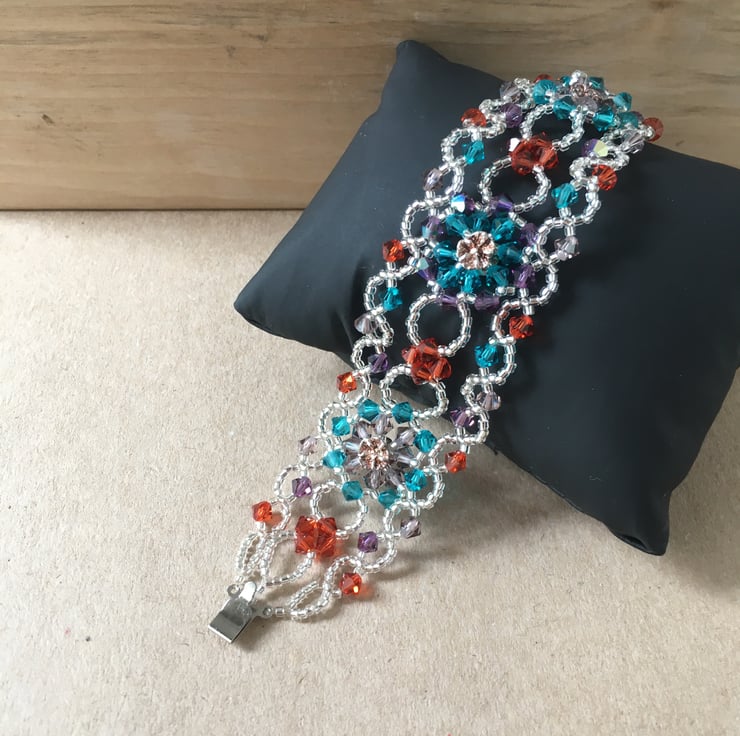 Beautiful glass seed bead & crystal bead beaded bracelet - Wedding jewelry