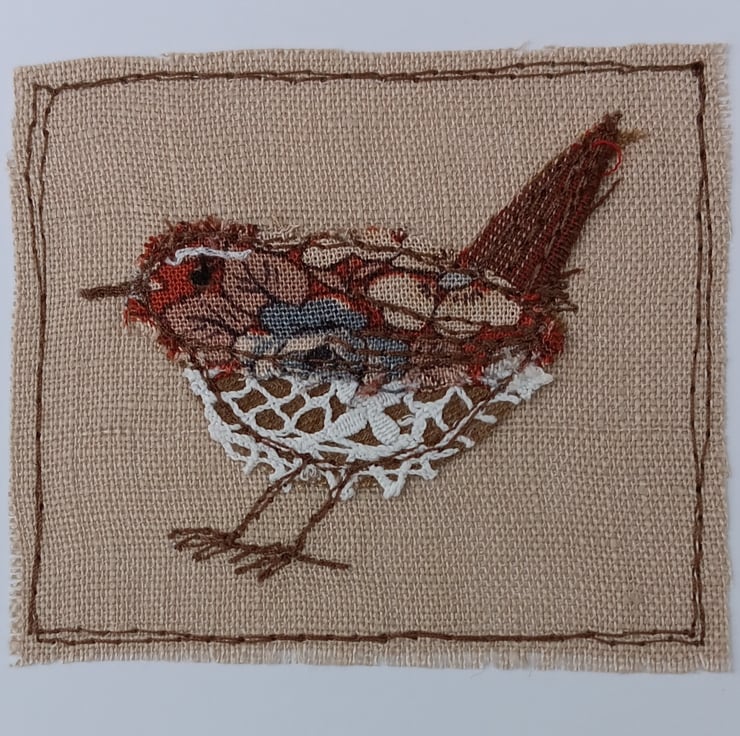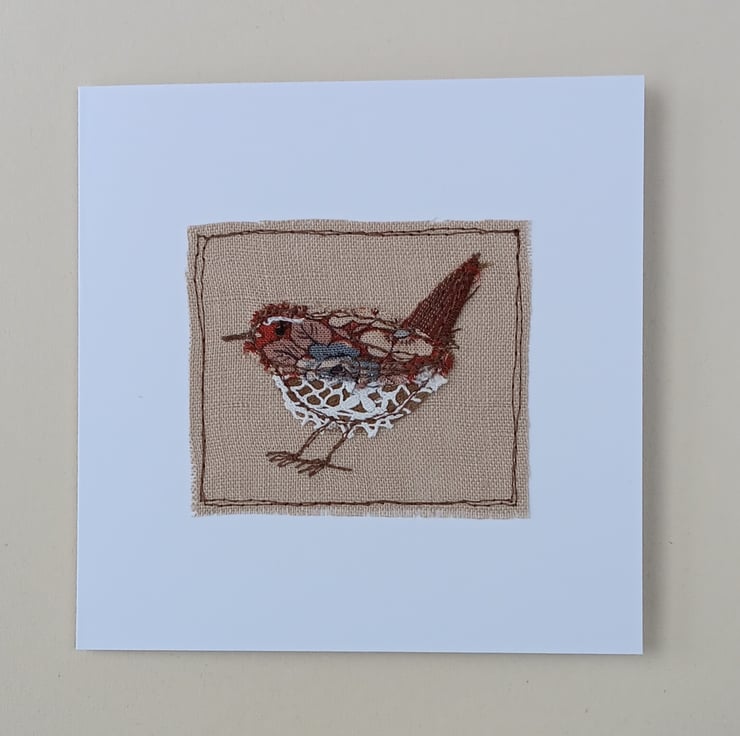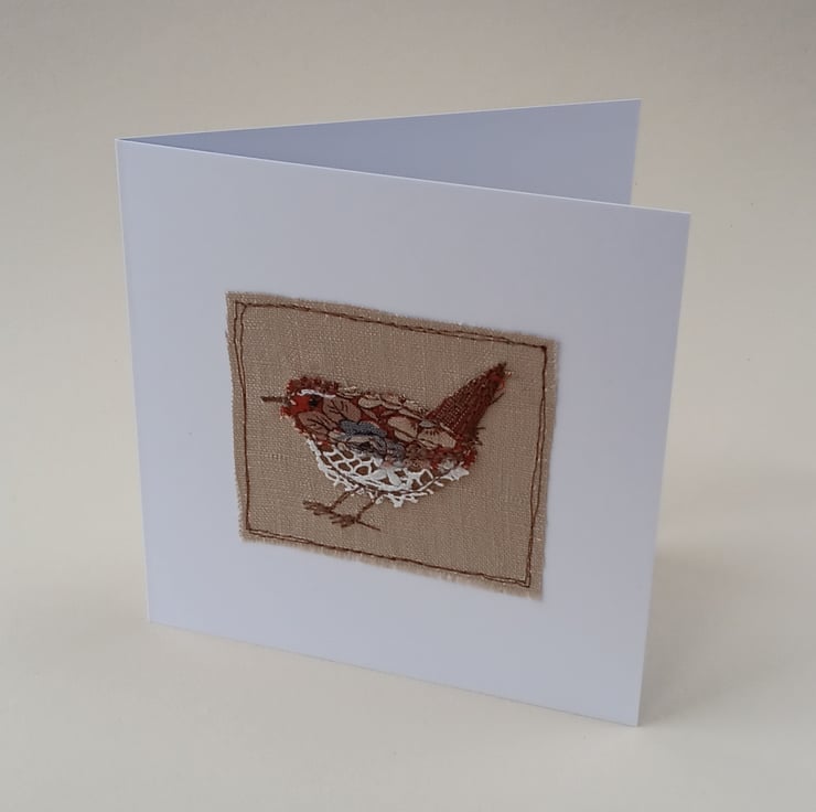 Appliqued Wren Sewn Textile Greeting Card