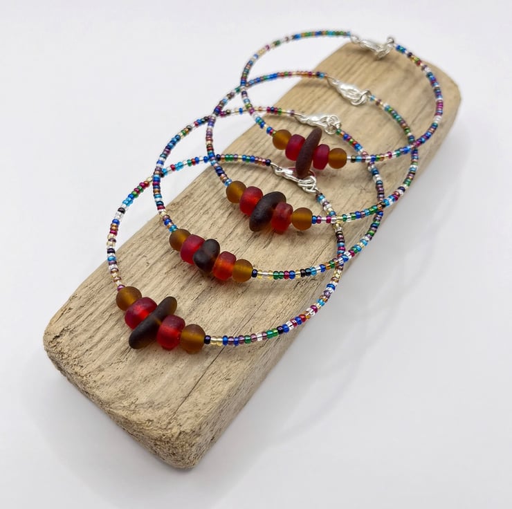 Although the design will be the same, each bracelet will vary slightly from the one in the photo as the shape and patina of these colourful little beach gems is down to the sea, making each one completely unique. I'm happy to send photos of ones that are available so you can choose, just pop me a message.