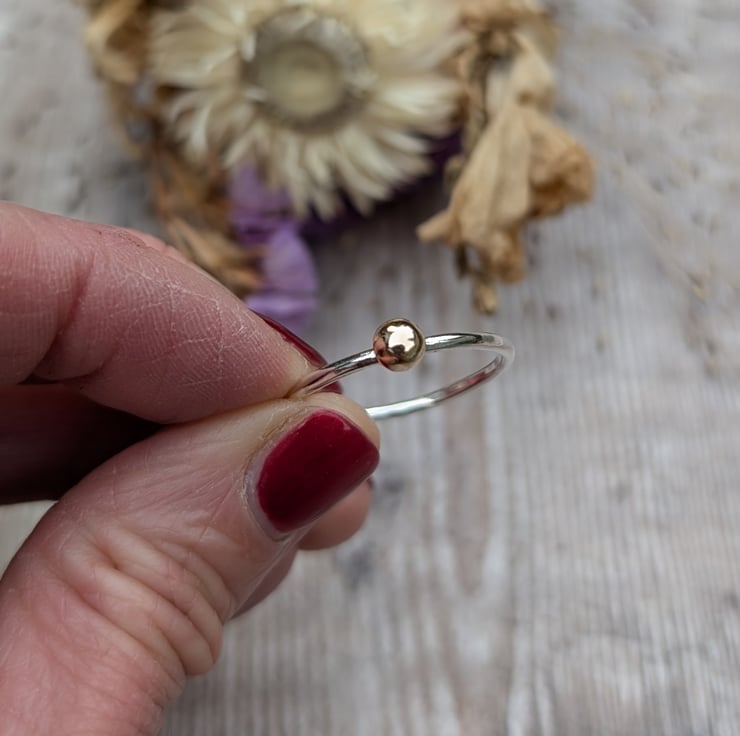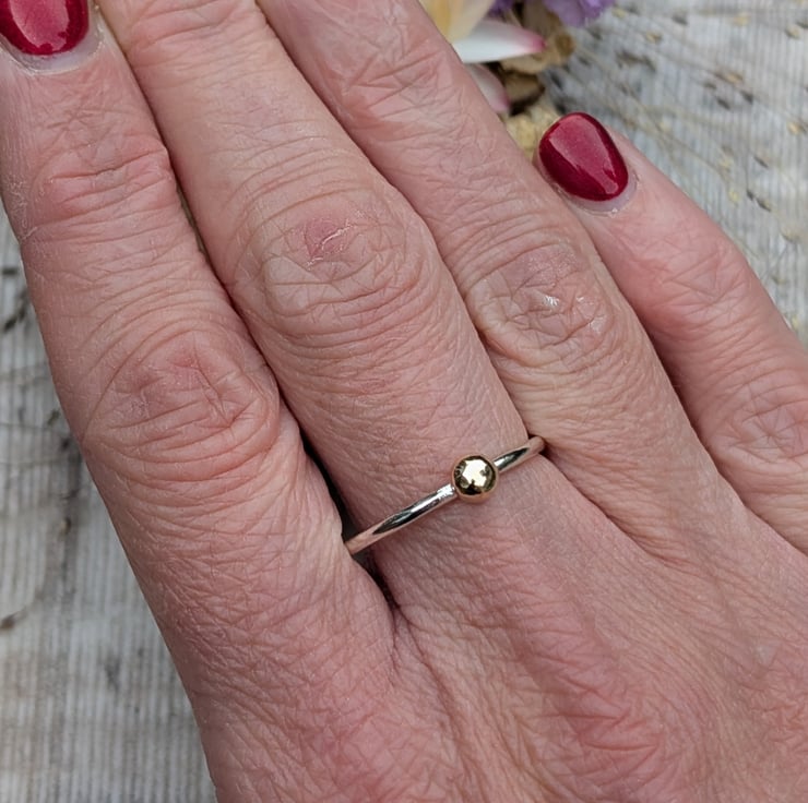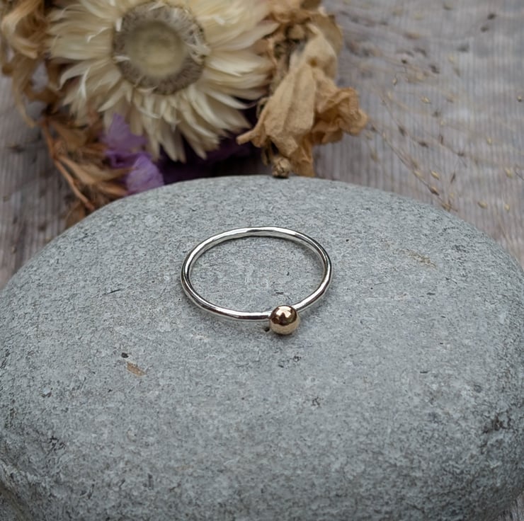 Recycled Sterling Silver and 9ct Gold Small Pebble Stacking Ring