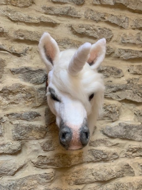 Meet Lyra, needle felted faux taxidermy mystical Unicorn head, handmade using natural wool fibres.