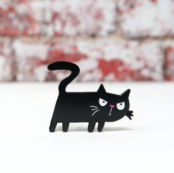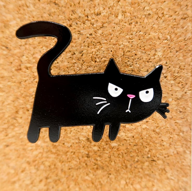Make a bold statement with this Angry Cat enamel pin! Featuring a fiercely adorable scowling kitty. This pin is perfect for anyone who can relate to the occasional mood swing or a bit of sass. The pin is crafted from high-quality enamel set in durable metal with a smooth finish that captures every tiny detail of this feisty feline.