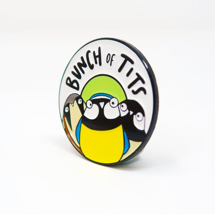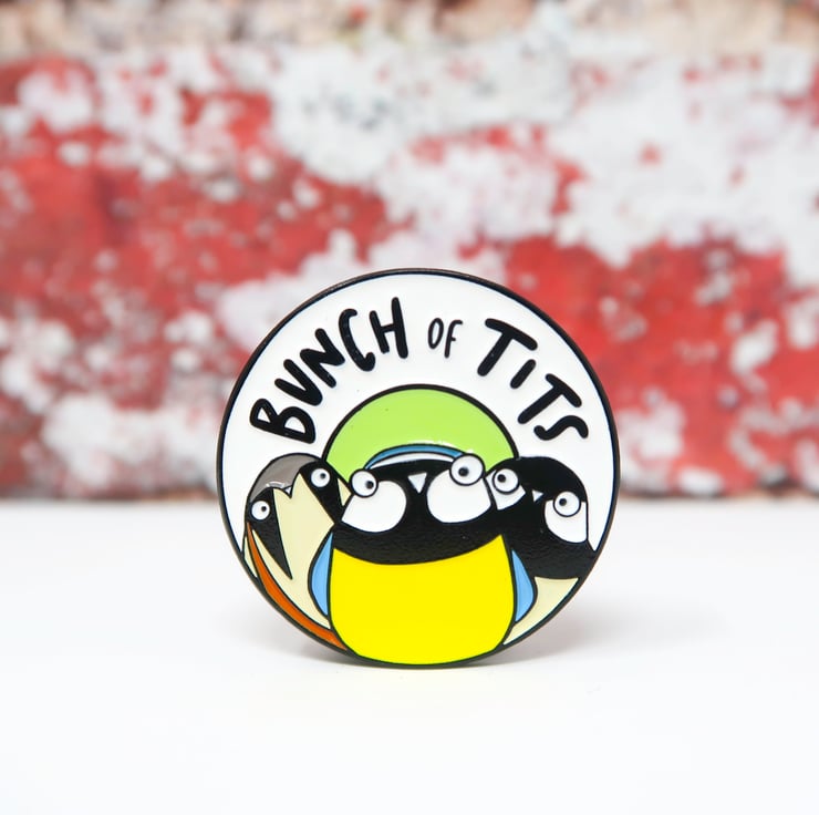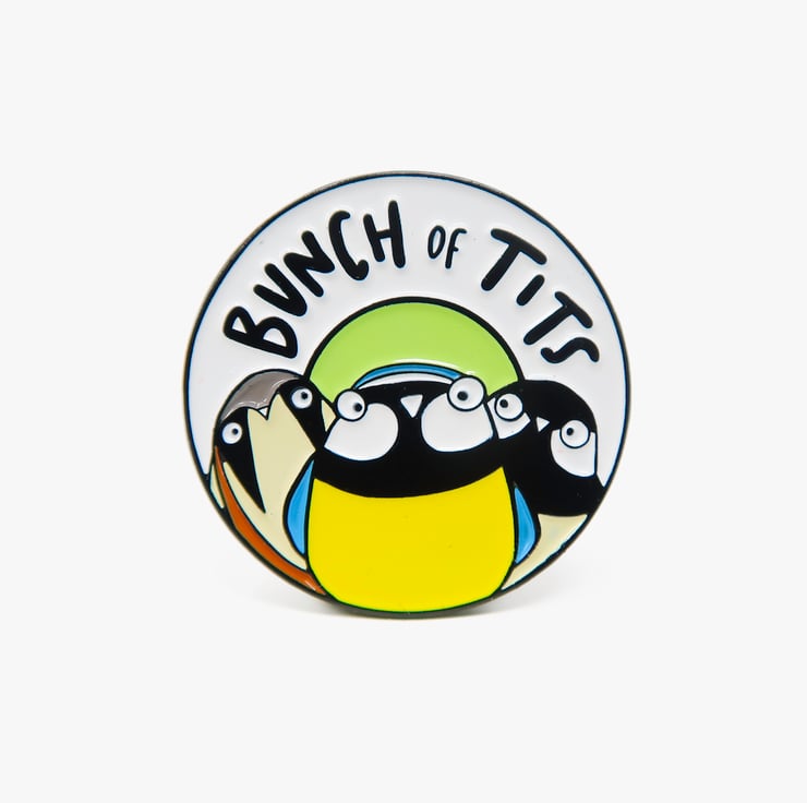 Introducing the Bunch of Tits enamel pin—a fun tribute to three birds! This pin showcases a bearded tit, blue tit, and coal tit, gathered together for birdwatching enthusiasts and nature lovers.