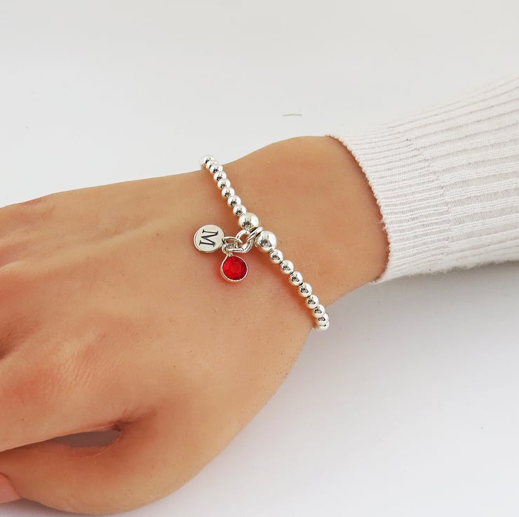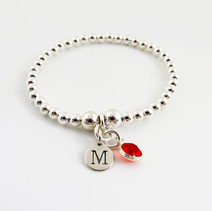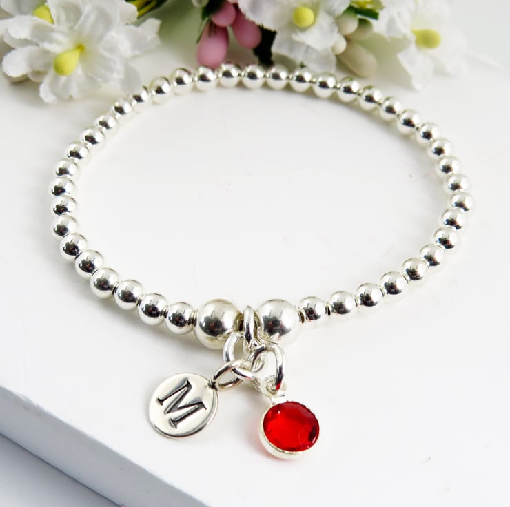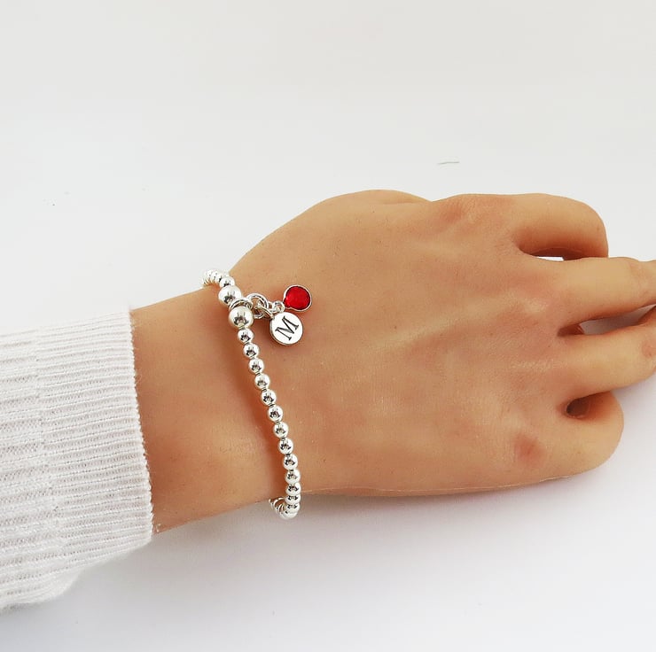 A gorgeous personalised sterling silver daisy and inital charm bracelet. A silver beaded bracelet which is ideal for birthdays and everyday wear.