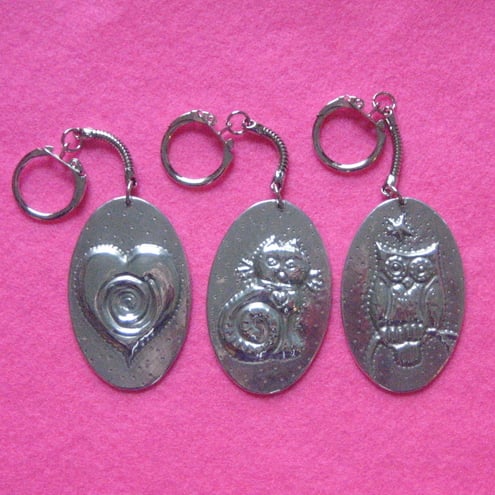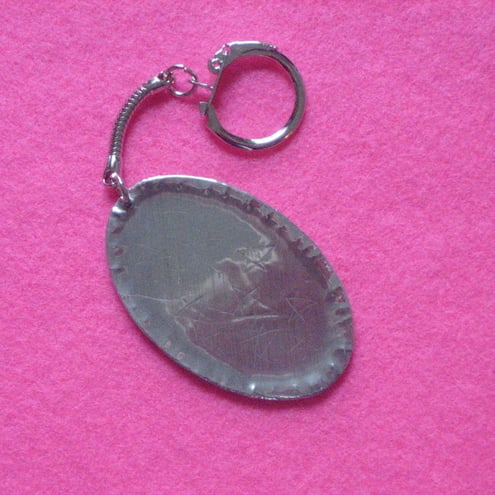This keyring has been hand-made in shiny modern pewter. (The design has been raised on a piece of sheet pewter, the raised area has been filled,then mounted on a rigid base) The oval measures 60 x 37mm,and is light in weight.