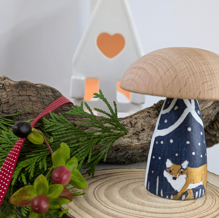 I buy these beautiful wooden Toadstools from a UK company who handmake them. I then create beautiful miniature paintings in acrylic. Because they are Handpainted each one is unique. The Toadstool cap has been left plain and is beautifully smooth.