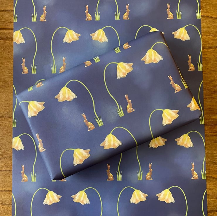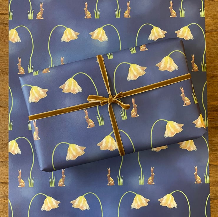 Both/all sheets of this Hare and Flower wrapping paper will be delivered neatly folded into 4, safely sandwiched between two pieces of stiff cardboard and very well wrapped!