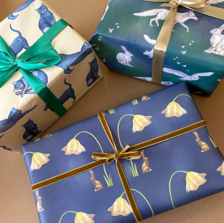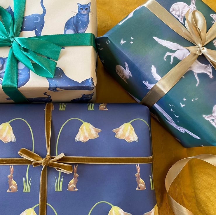 Please note that the 3rd and 4th photos feature this wrap along with my other illustrated wrapping papers (Lunar Cats and Woodland Spirit Animals), also available elsewhere in my shop!