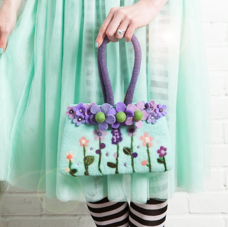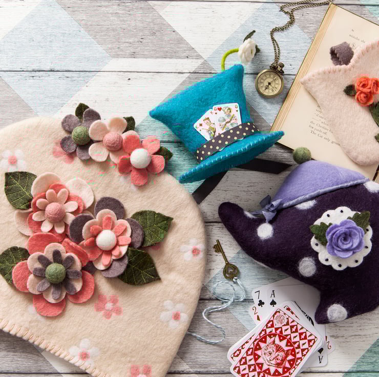 There are 12 gorgeous projects, ranging from decorative teacups, a teapot and a tea light holder to more practical pieces such as a pretty handbag, a lampshade and cosy slippers – all inspired by Lisa’s love of fairy tales and fantasy stories, including Alice in Wonderland. You can embellish these lovely felted items in many different ways and create your own fabulous works of art. She also includes other techniques such as needle felting, hand stitching, embroidery and applique to further embellish the projects. The projects can be followed exactly, but also provide you with the inspiration to let your creativity loose and customize them to your own style.