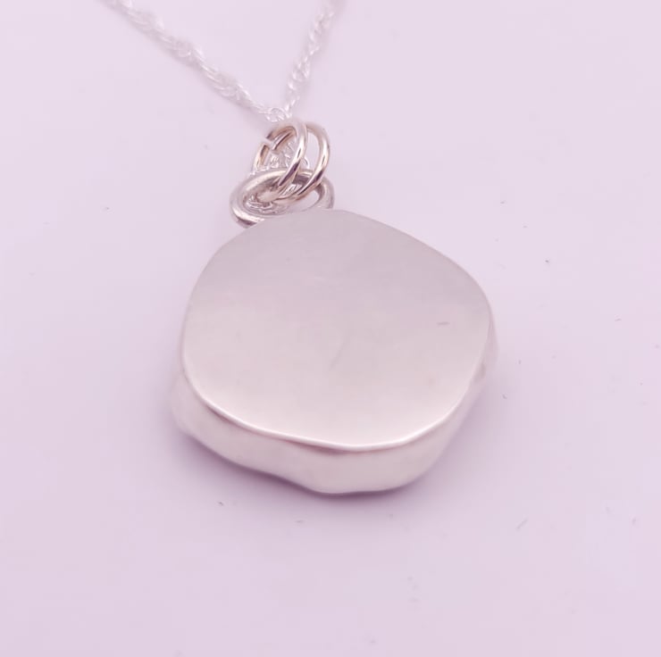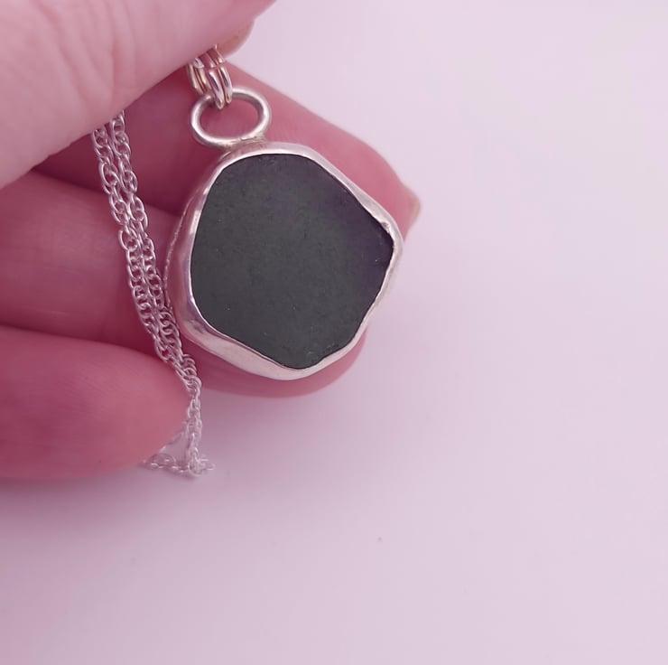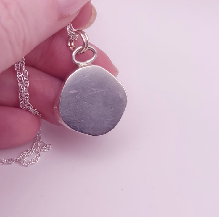 Set in a recycled Sterling Silver bezel and hung from a sterling silver chain.
