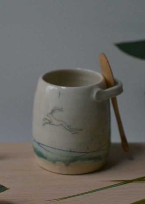 Inspired by a desire for sustainable living, this hand thrown Hare ceramic sugar bowl and spoon represents a slower way of life.