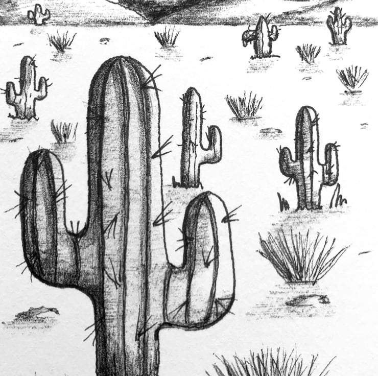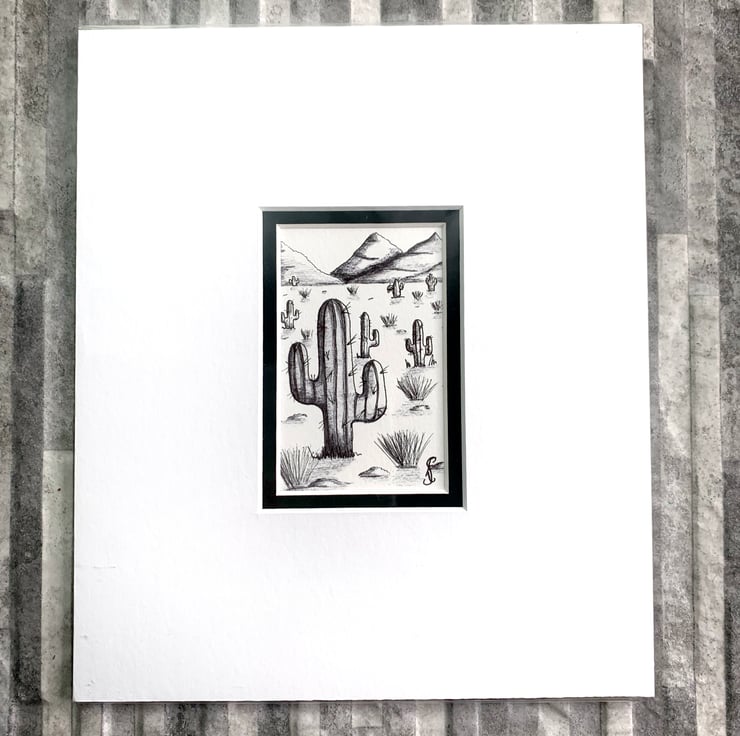 Mini Cactus pen and ink illustration Double mounted and ready to frame. (No. 30)