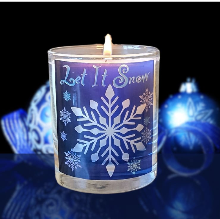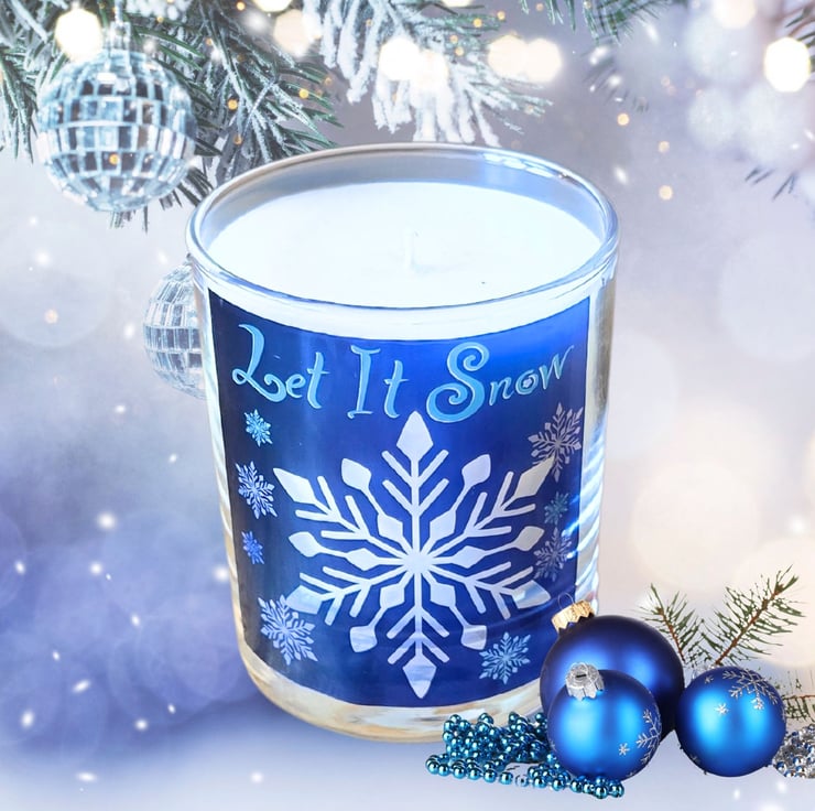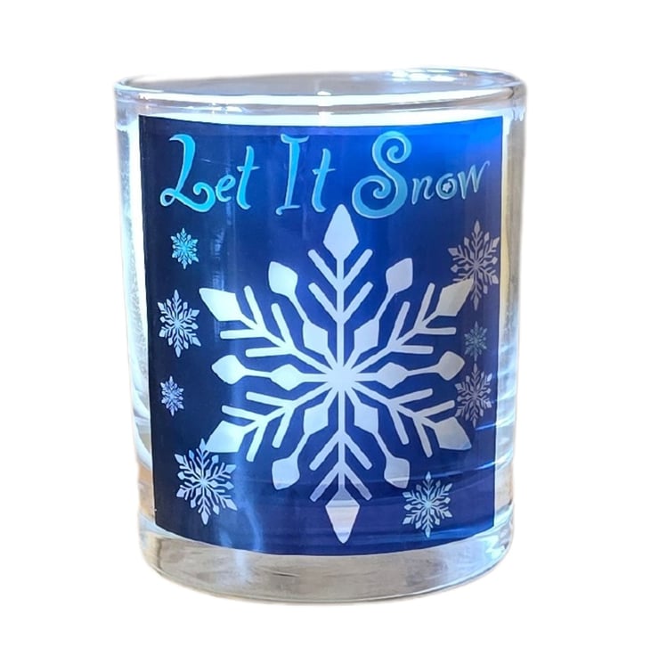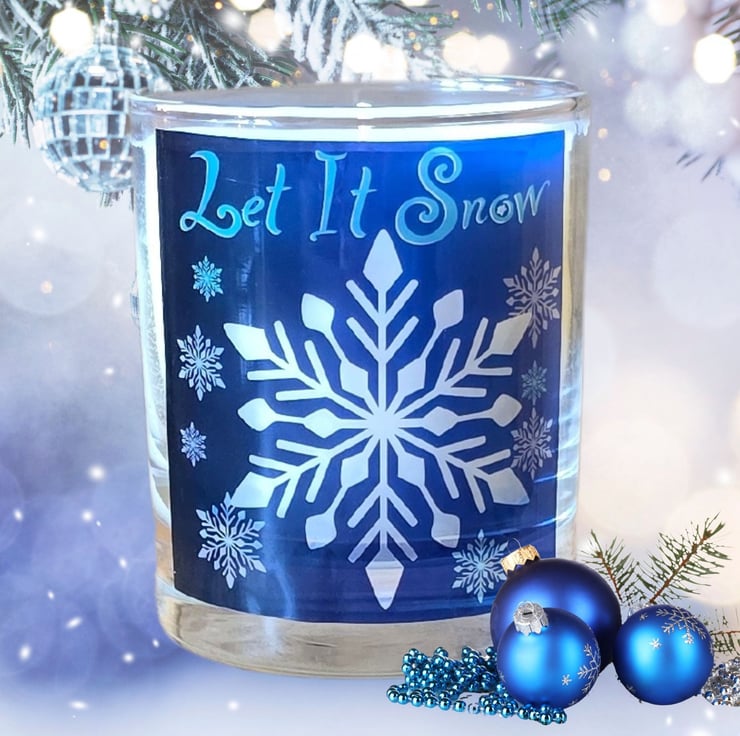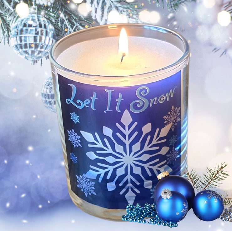 A seasonal scented candle with a Let It Snow snowflake design. Available in 6 festive fragrances to add the aroma of Christmas to your home. Handmade in Northamptonshire using a high quality rapeseed and coconut wax blend, the finest range of fragrances, poured into quality glass containers and supplied in a kraft box.