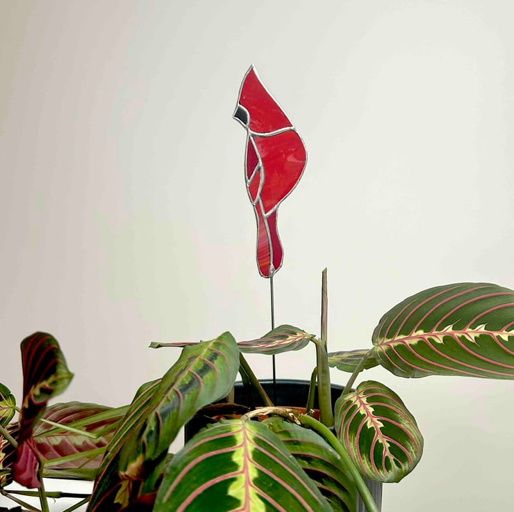Introduce a splash of vibrant charm to your planters with our handmade stained glass bird suncatcher ornaments from Pipsiglass.