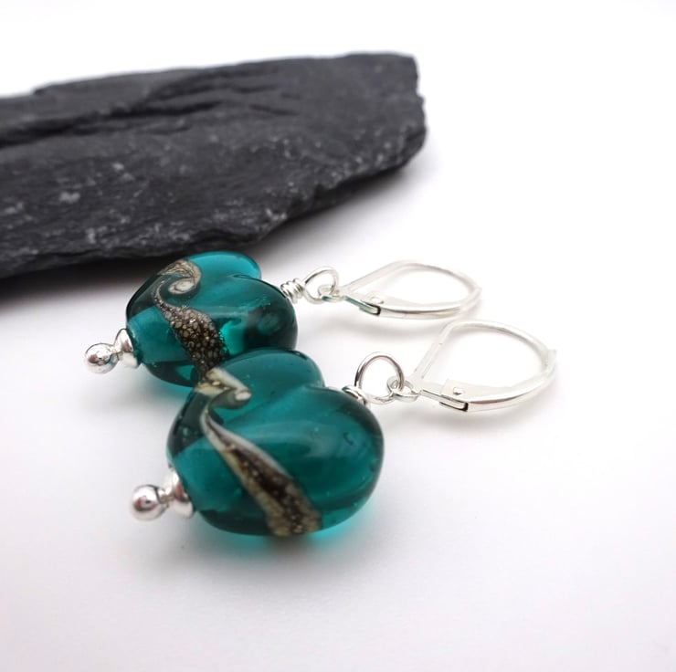 The beads have been handmade by me using teal green and ivory glass and shaped into hearts.