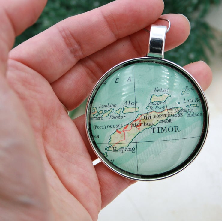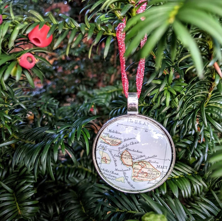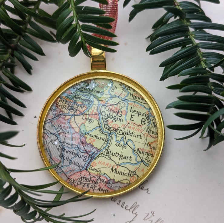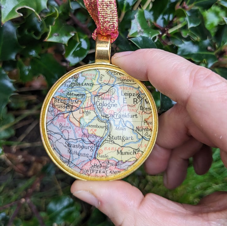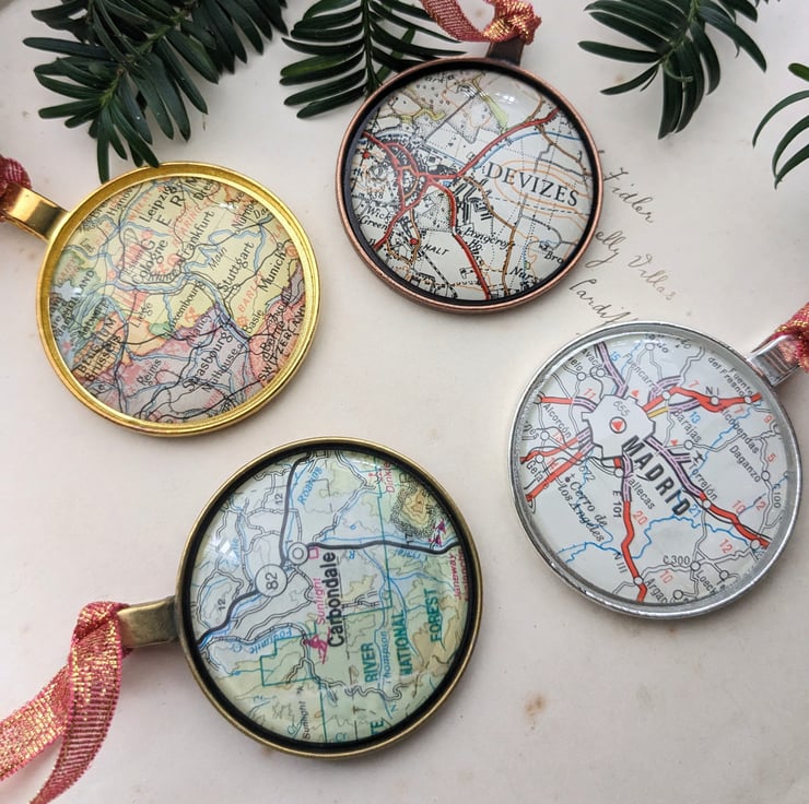 Personalised Christmas Tree Decoration with Custom - chosen by you Map location, made by me using authentic Vintage maps of places you feel the sentiment.