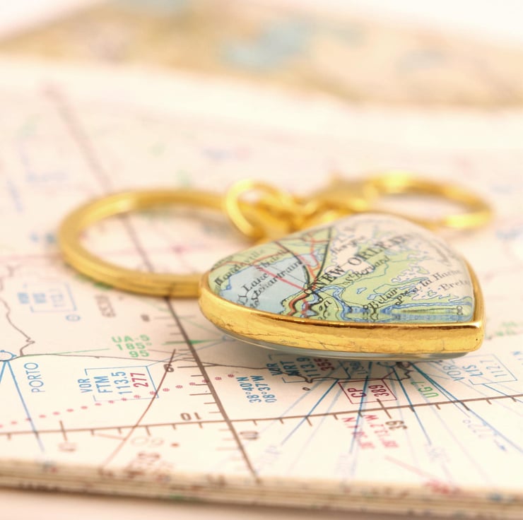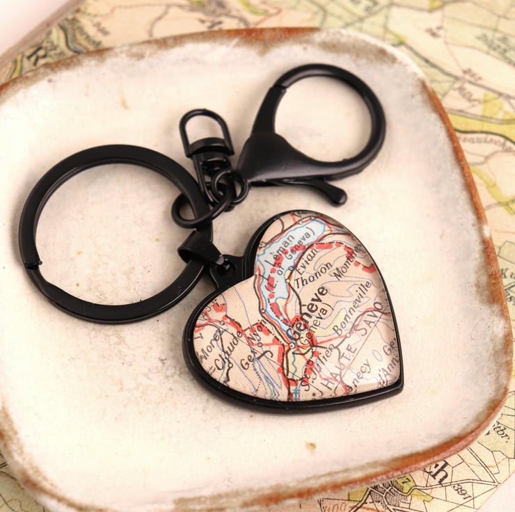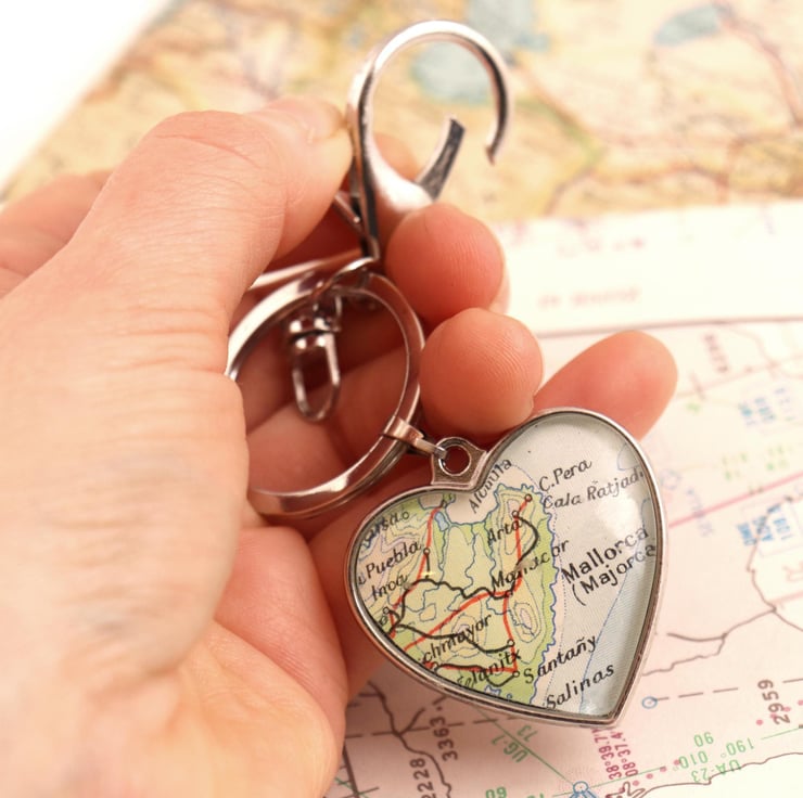 Discover my fabulous personalised vintage map heart keychain, a unique double-sided keyring perfect for the long distance relationship couple. Select two destinations that hold special memories, beautifully captured on this timeless treasure. Crafted with love, this custom keychain makes a heartfelt gift for birthdays, anniversaries, or just because. Keep your favourite places close to your heart while adding a touch of nostalgia to your keys or bag. Celebrate your journey with this exquisite keepsake today! Ideal for those who cherish adventure and memories.