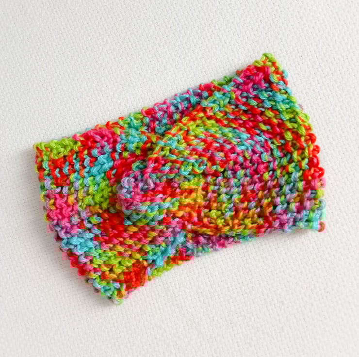 To fit: adult. The length is:50 cm or 20 inches. The width is 14 cm or 5.5 inches. The headband is knitted in double knitting yarn use double throuhgout and using 6.5 mm knitting nedles. The headband is knit flat and seamed. There is a twist at the front of the headband.
