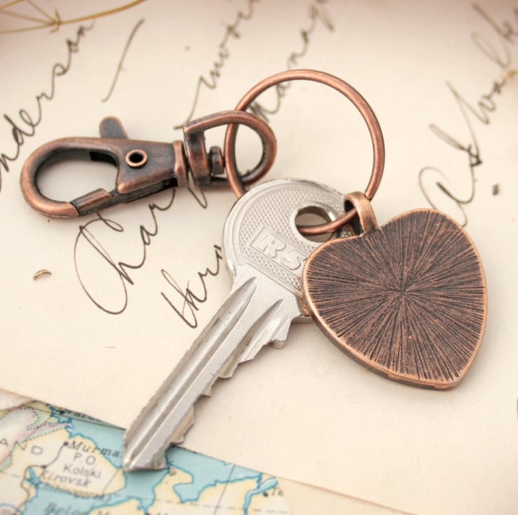 This key is mine and it is on a pic only as a prop. You will recieve keychain including heart pendant, ring and clasp.
