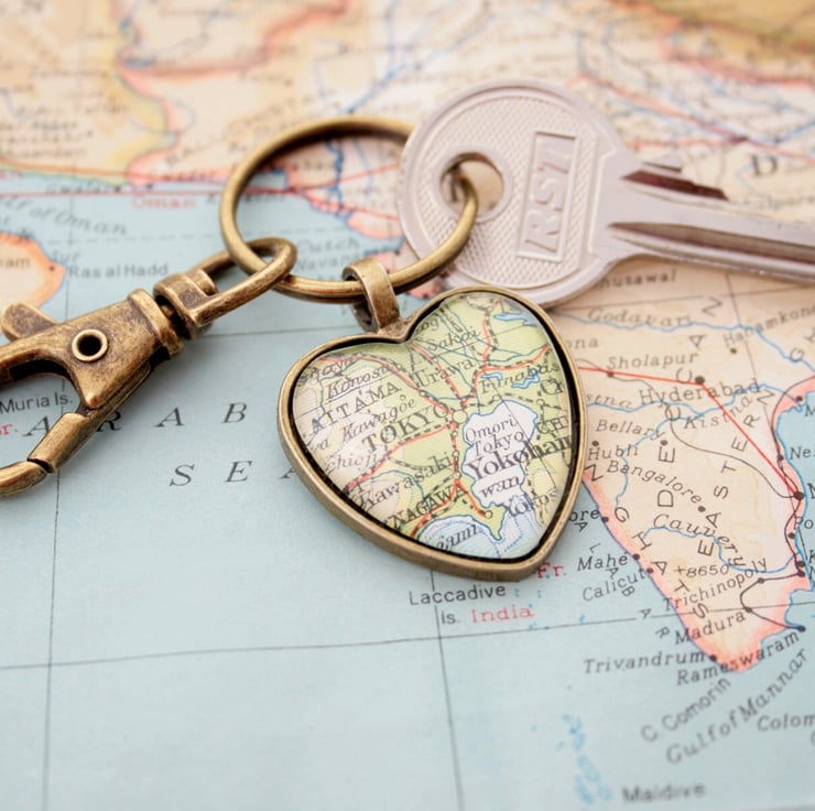 Lovely keychain may create an unforgetable keepsake of where you two have met.
