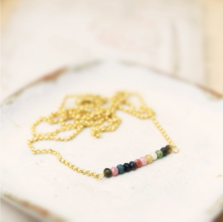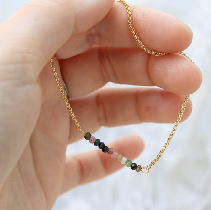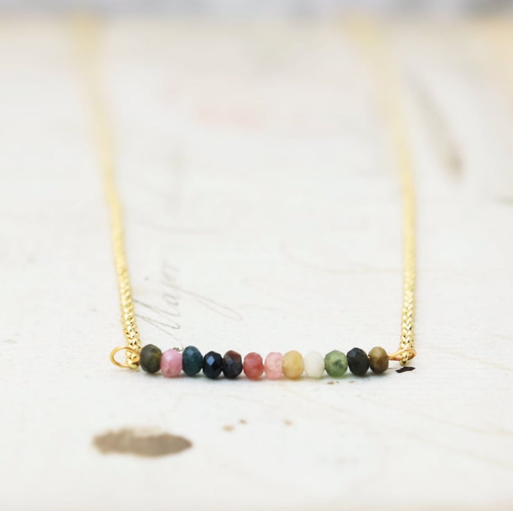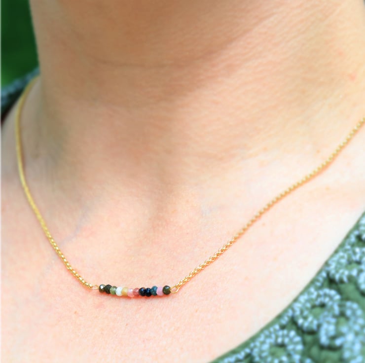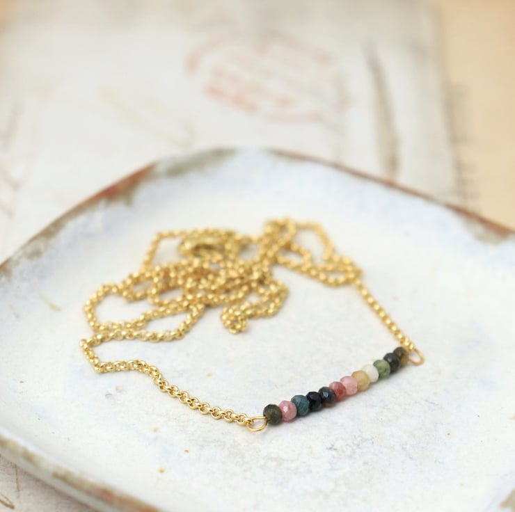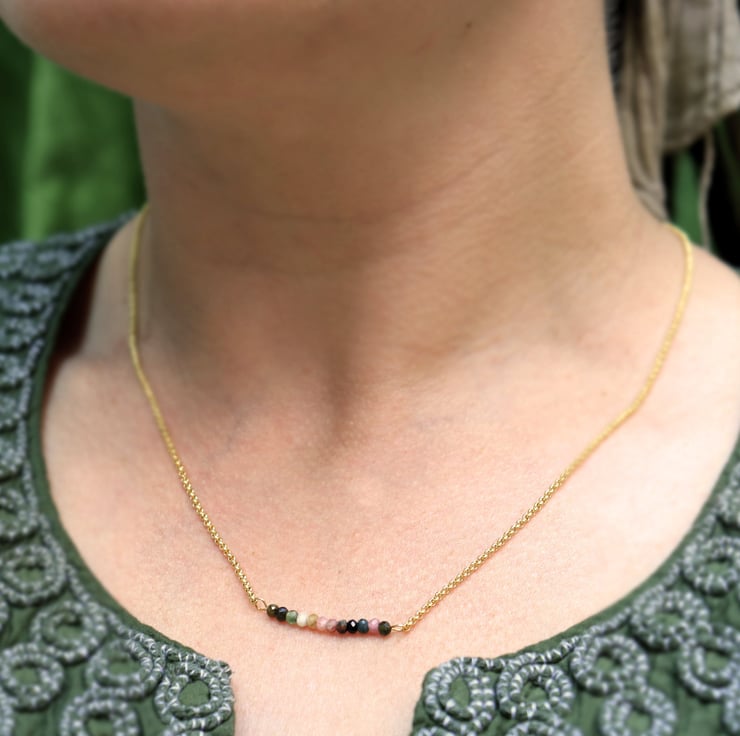 This adorable tourmaline bar necklace can be a lovely addition to a feminine woman's jewellery collection.