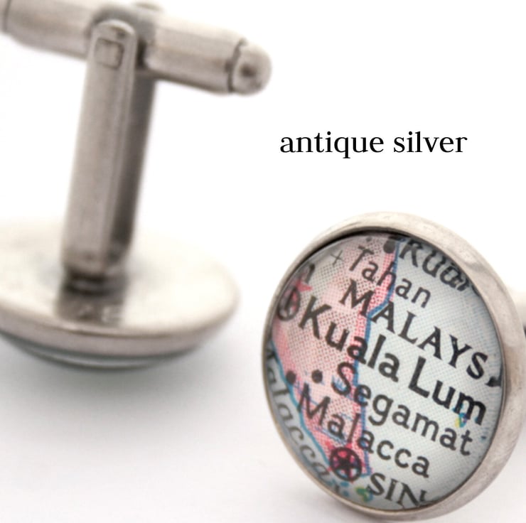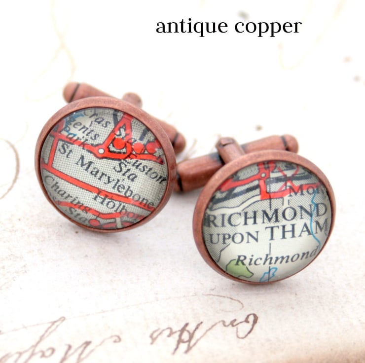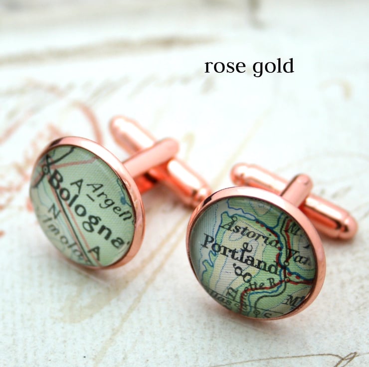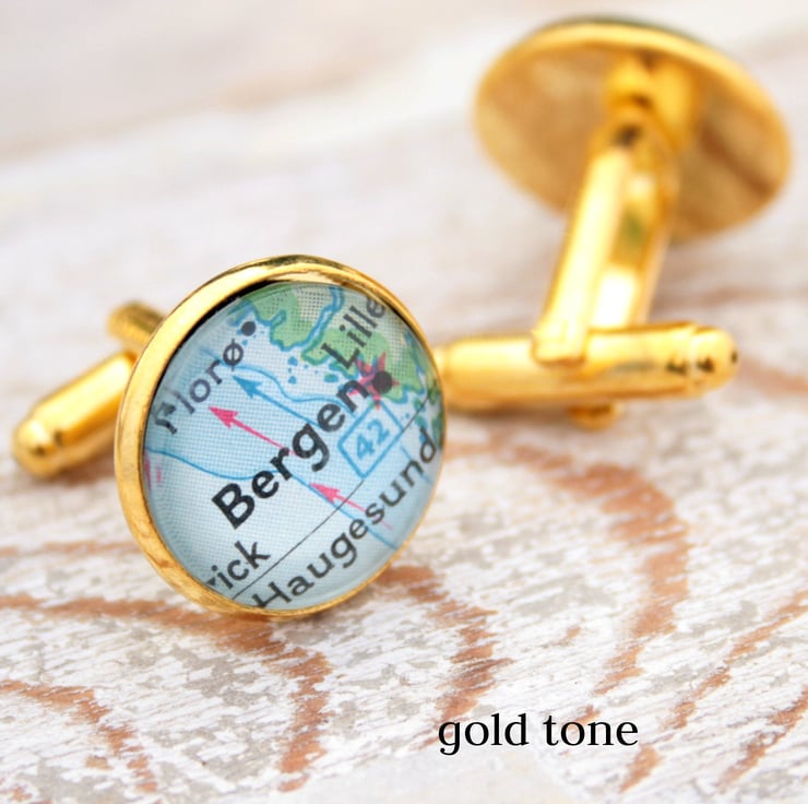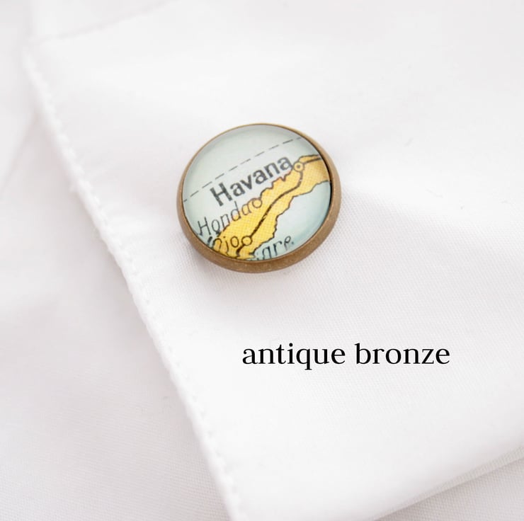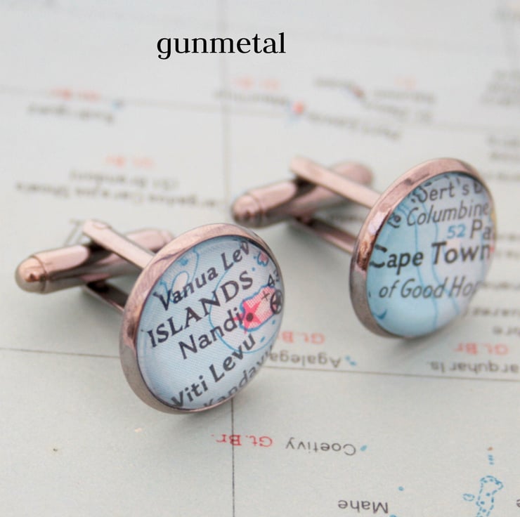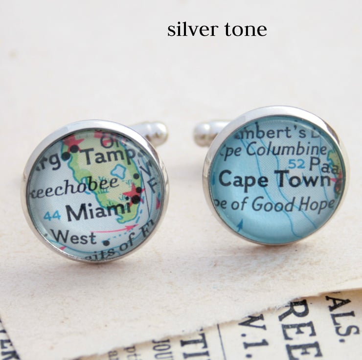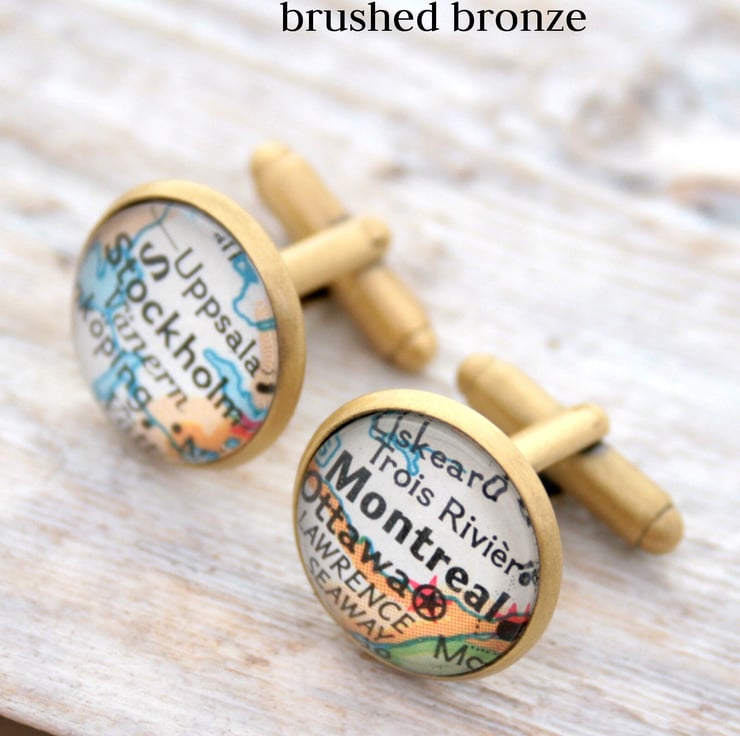 Personalized Cufflinks made from authentic Vintage maps of places you feel sentiment to. These lovely custom made cufflinks are the must have accessory for any well-dressed wardrobe.